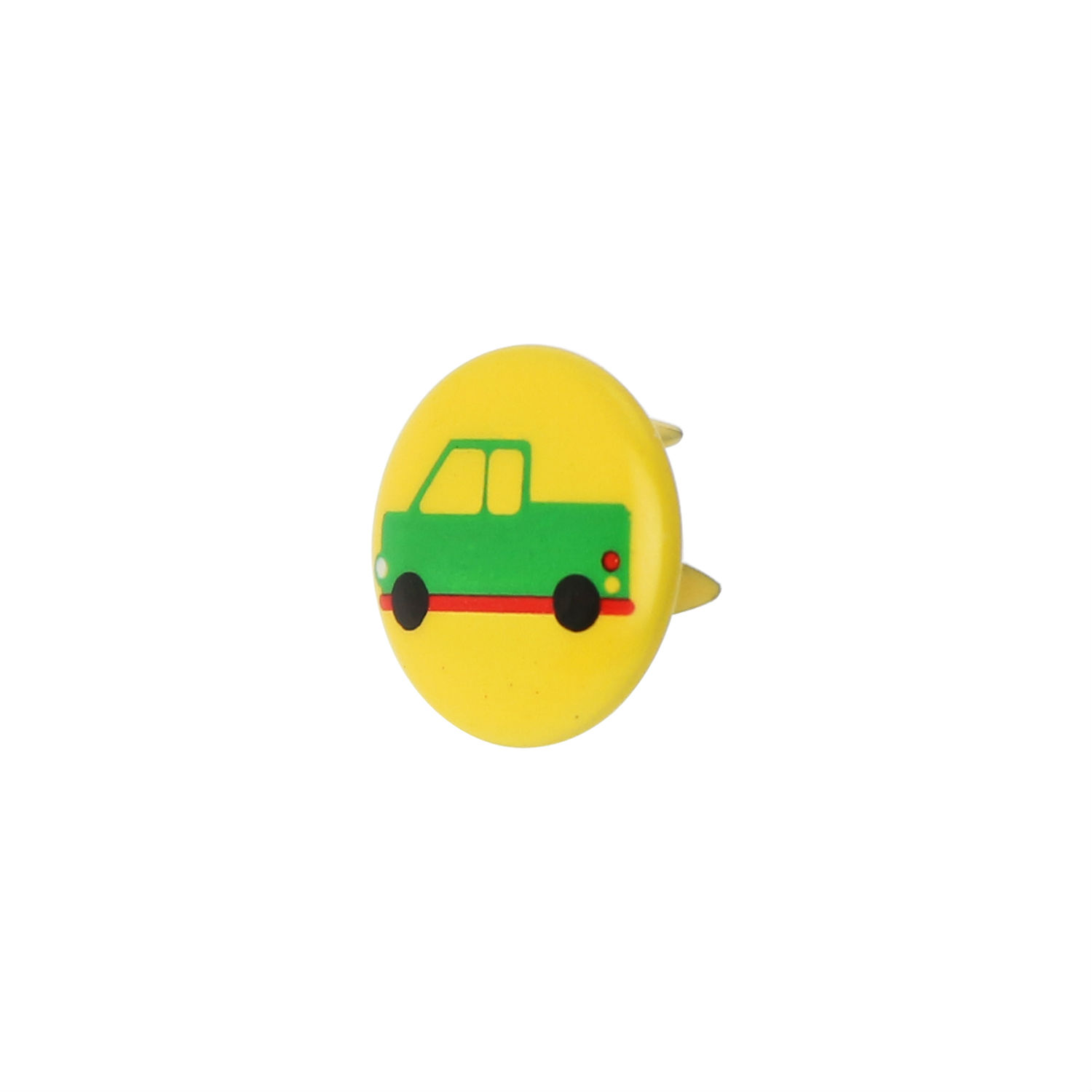 This 5-prong snap popper sports a solid construction in brass. It features a dome-shaped cap with a car print on a vibrant background. Add an attention-grabbing accent to a wide variety of garment and accessory items like jackets, bags, bracelets, and lots more with this loveable one.