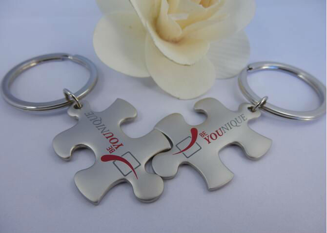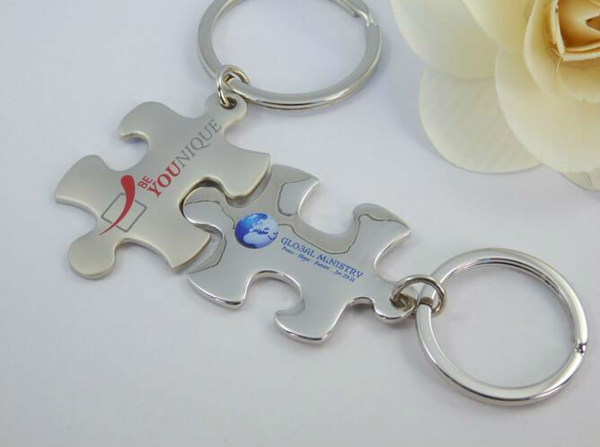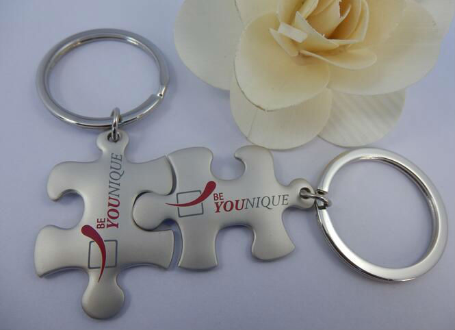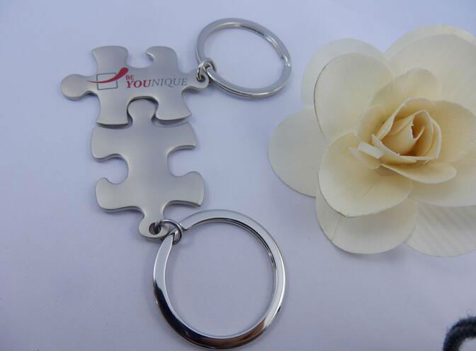 metal puzzle keychain displayed is made of zinc alloy material