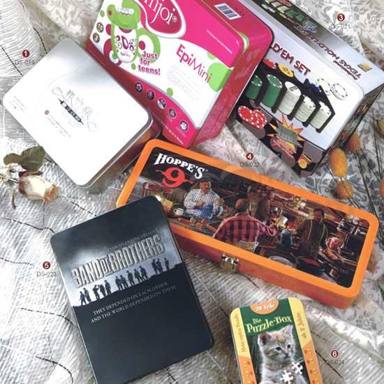 This is a series of metal tin boxes that is available in a square or rectangular shape. Each tin box is accented with tasteful patterns in different designs for a decorative touch. Different designs, shapes and sizes are available for you to choose from.