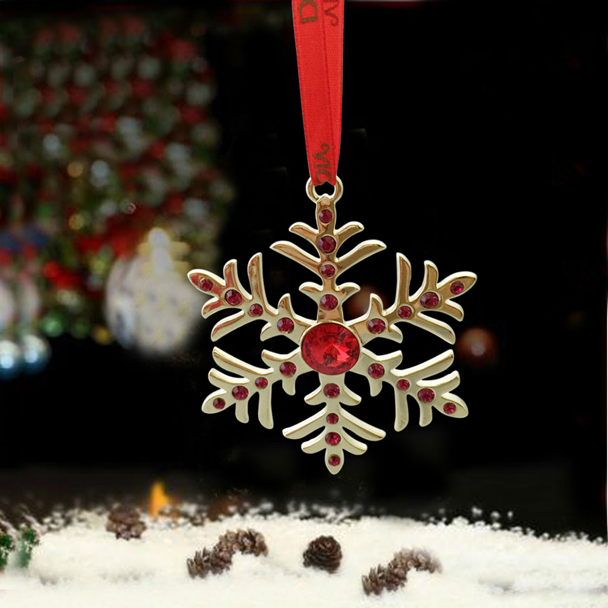 Metal Red Hanging Snowflake Christmas Ornaments