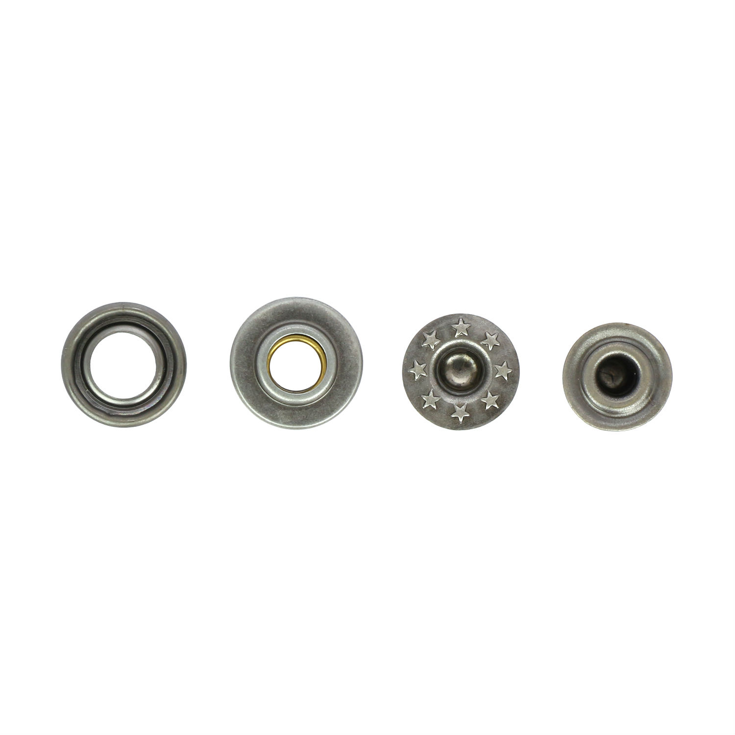 The featured metal button comes in multi-part structure and offers quick and secure snap fastening. It comes in a round shape and is decorated with stars. This button is simple to install and is suitable for jeans, jackets, bags, coats, shirts and more.