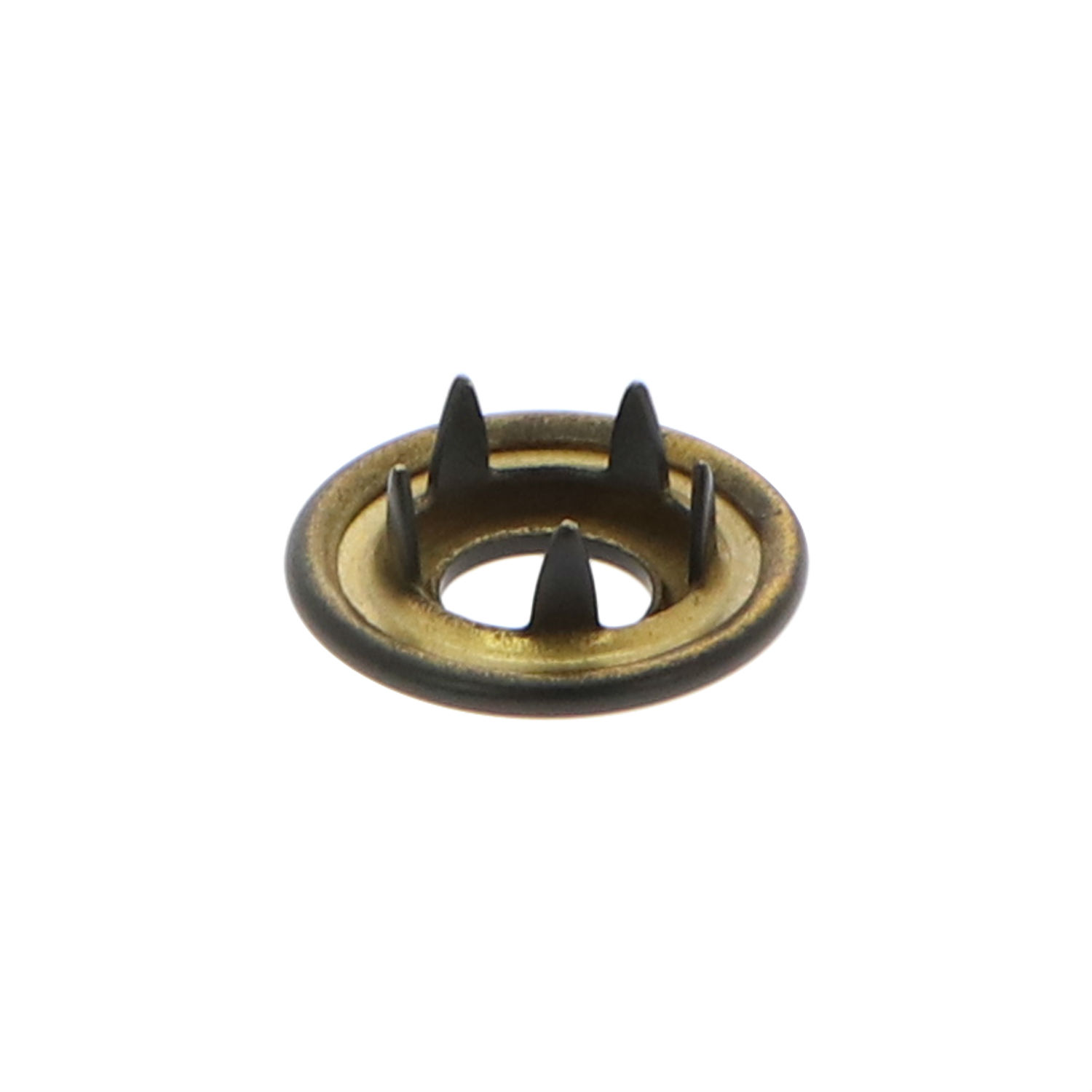 This round snap button is made of brass and has an elegant enamel finish. It offers secure snap on fastening and has five prongs to ensure easy attachment. The brass snap button flaunts excellent durability and is perfect for repairs and decoration use.