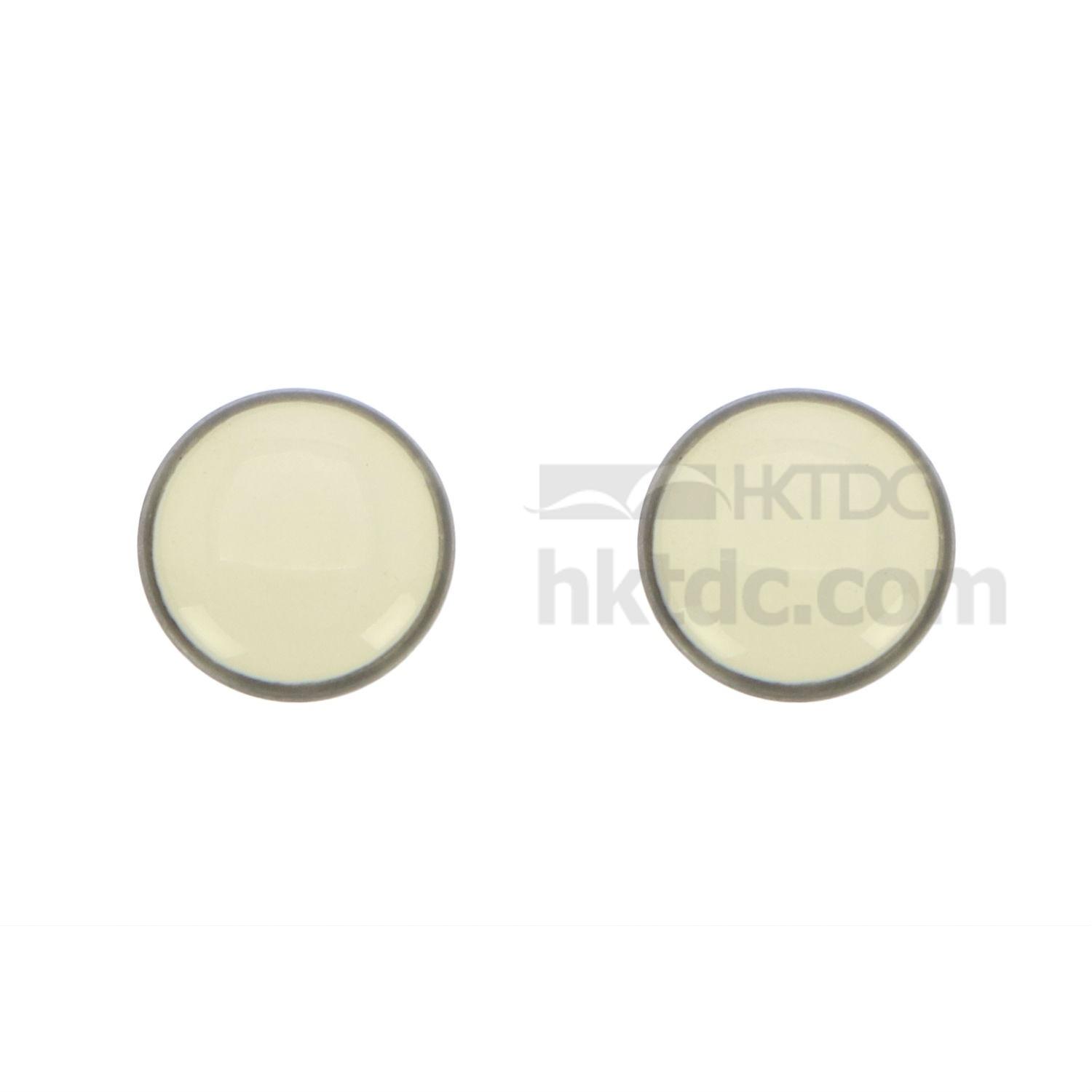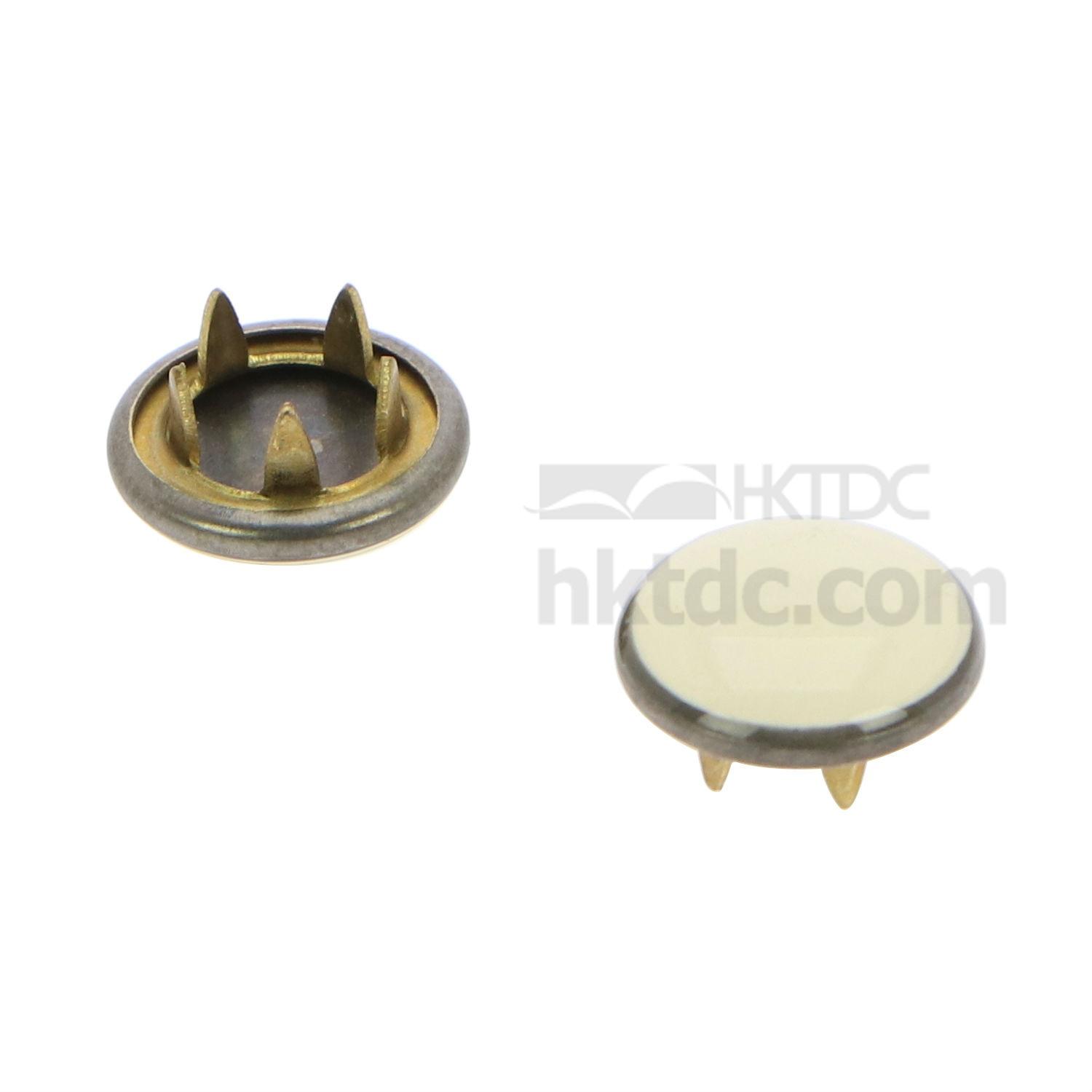 This button is made of brass and flaunts a simple and elegant design. It has a compact round body and is embellished with epoxy finish for a glossy look. The button has five prongs for installation and is ideal for using as an ornament and a fastener.
