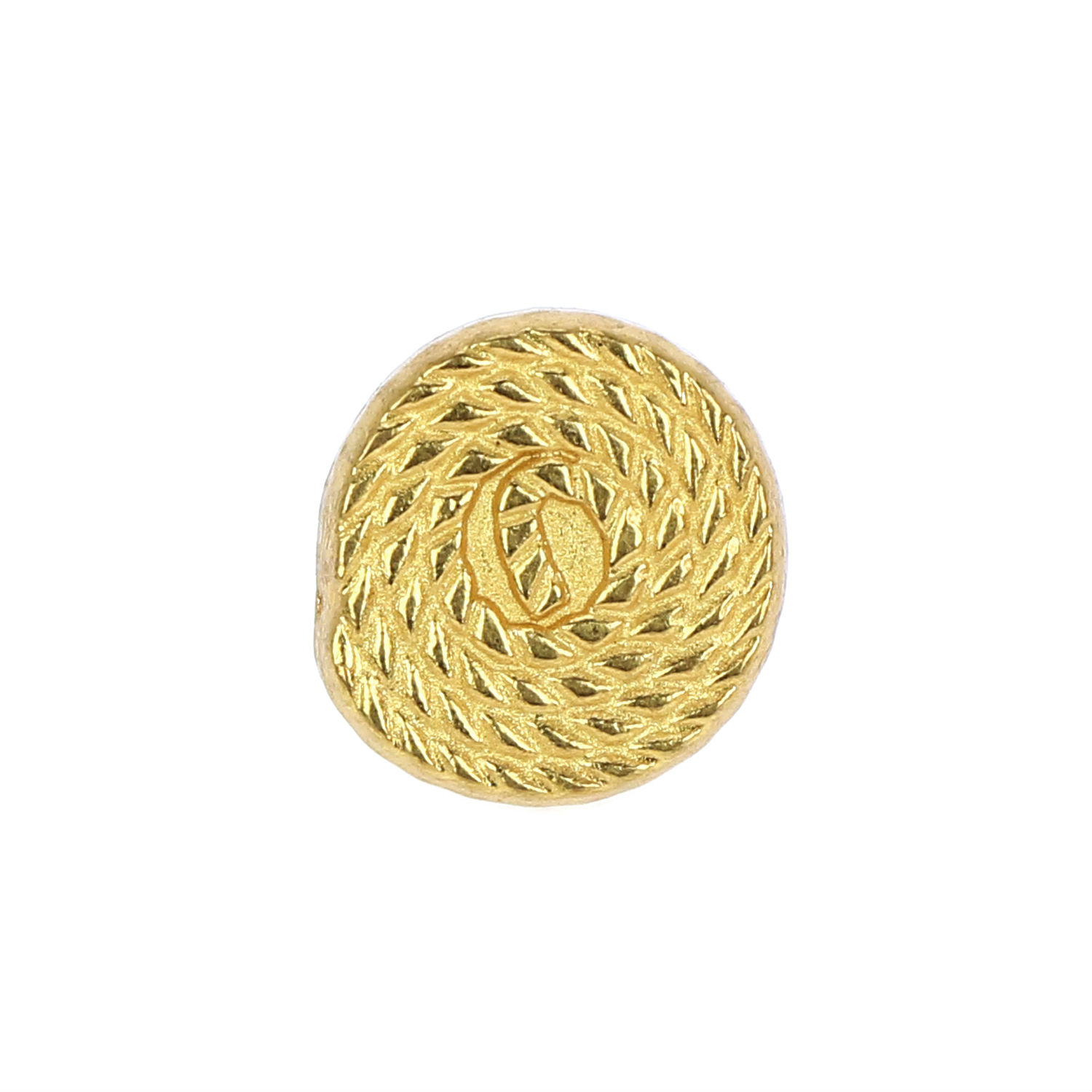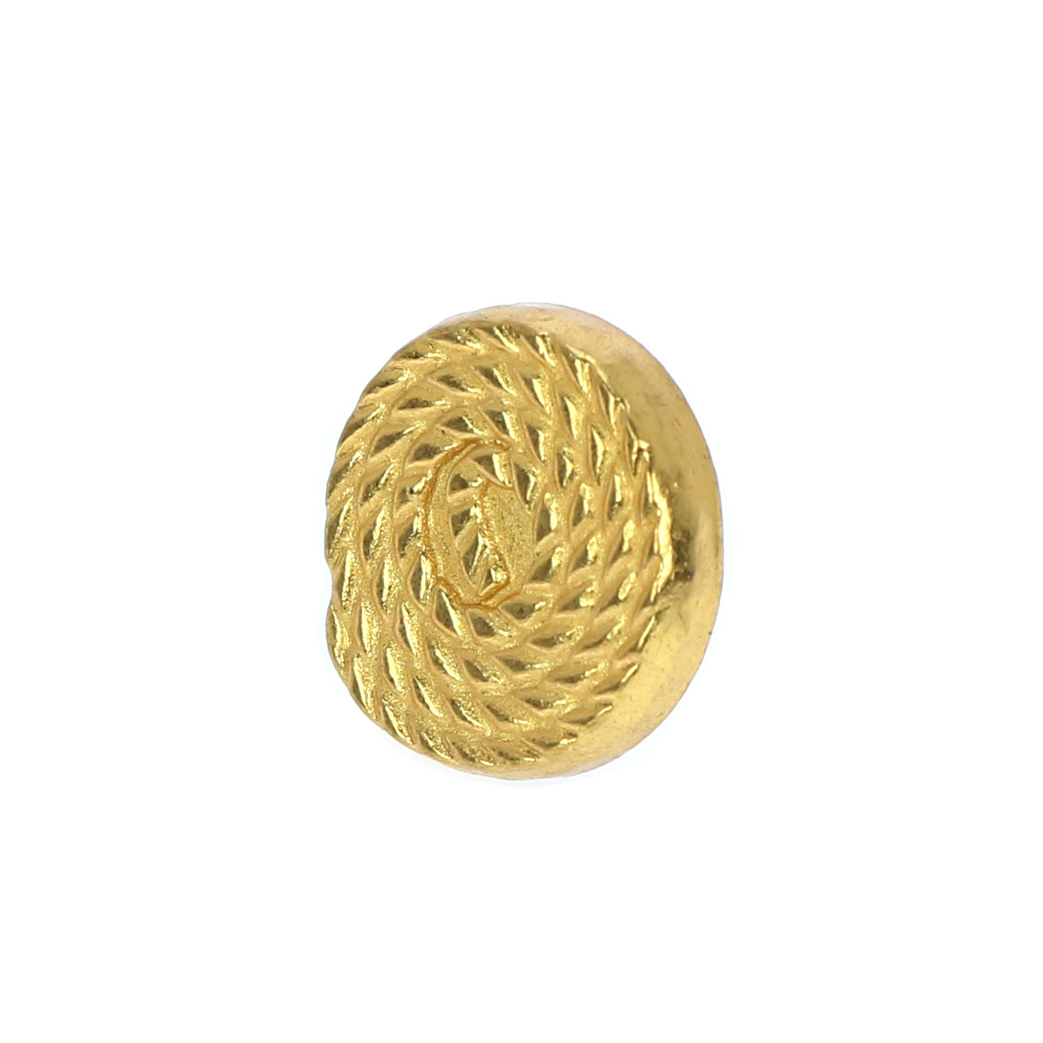 The pictured rivet is made of alloy and has a gold toned exterior.It is embellished with rope patterns and is excellent as an ornament for garments. This alloy rivet is simple to attach and can add a stylish touch to garments.