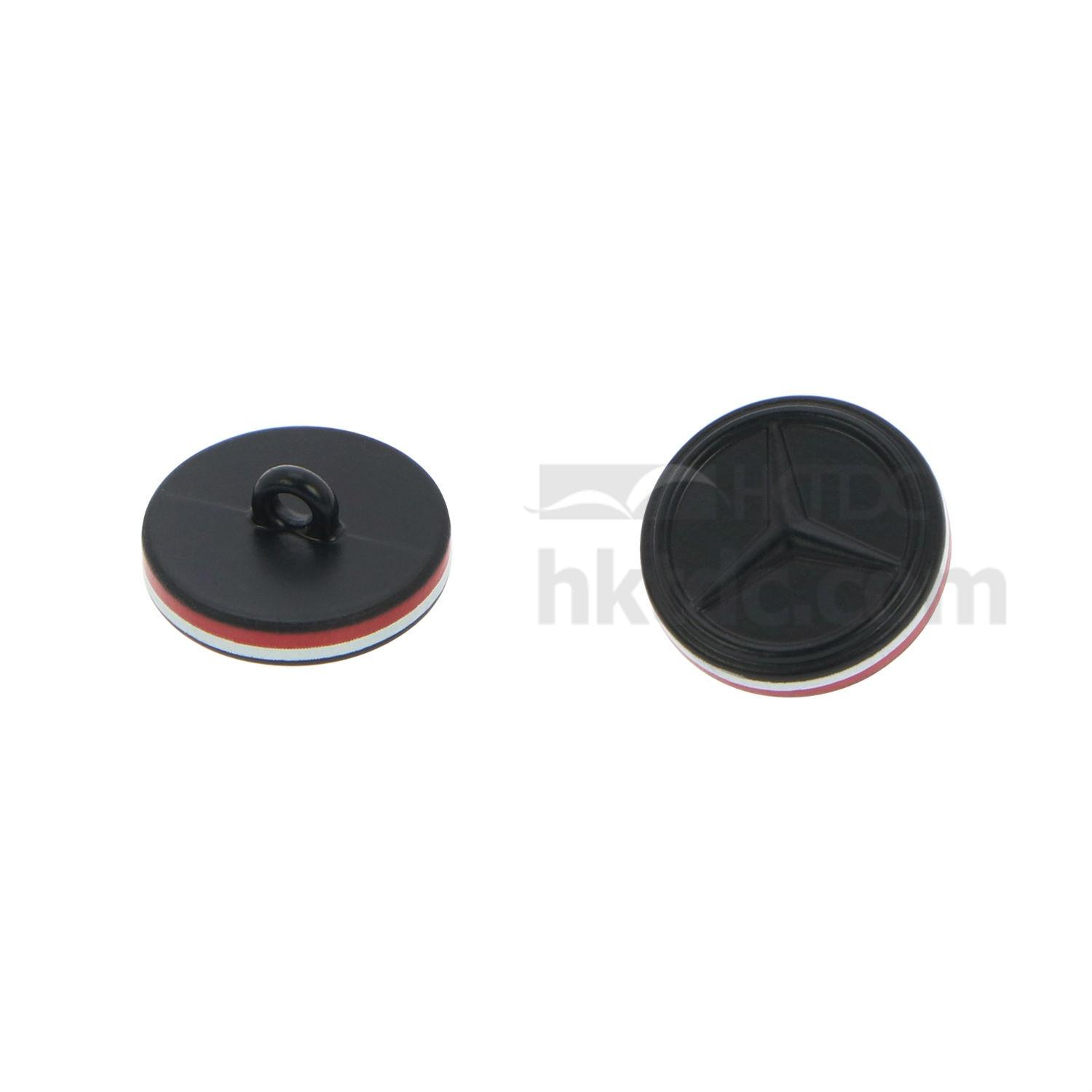 This button is made of alloy has a round body decorated with a three-pointed star. It offers a comfortable touch with an enamel finish and has a loop at the bottom. The alloy button can be easily sewn on fabric surfaces and is great for jackets, pants, bags and more.