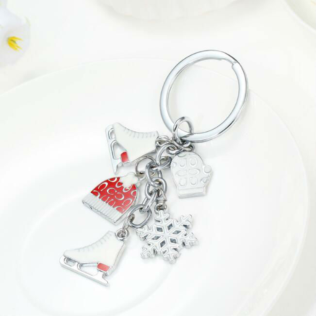metal skiing boots keychain displayed is made of zinc alloy material