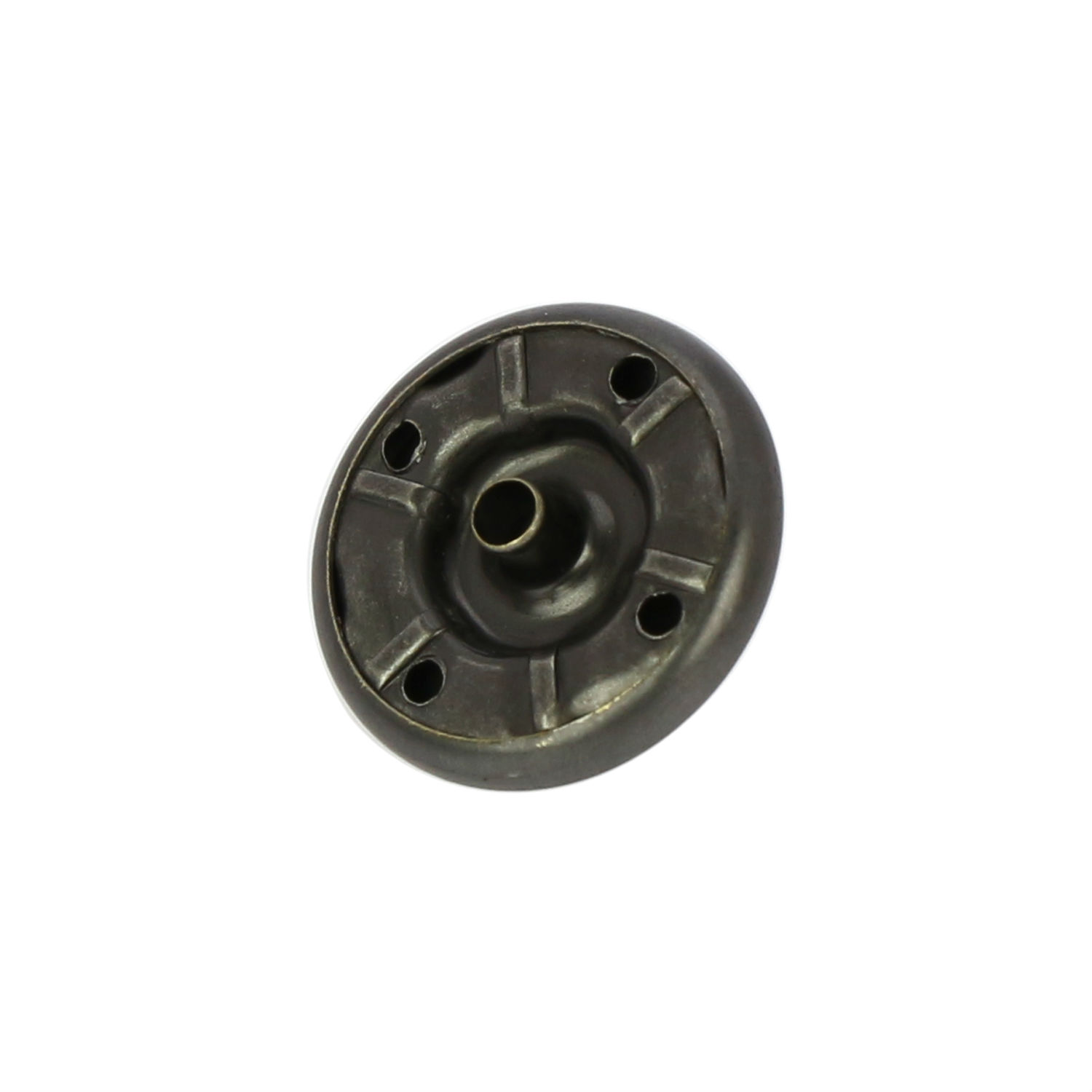 This snap button comes in a round shape and has a hole in the center for attachment. It flaunts a durable brass construction and has a plated finish. The snap button is versatile to use and ensure secure fastening for clothes, bags and more.