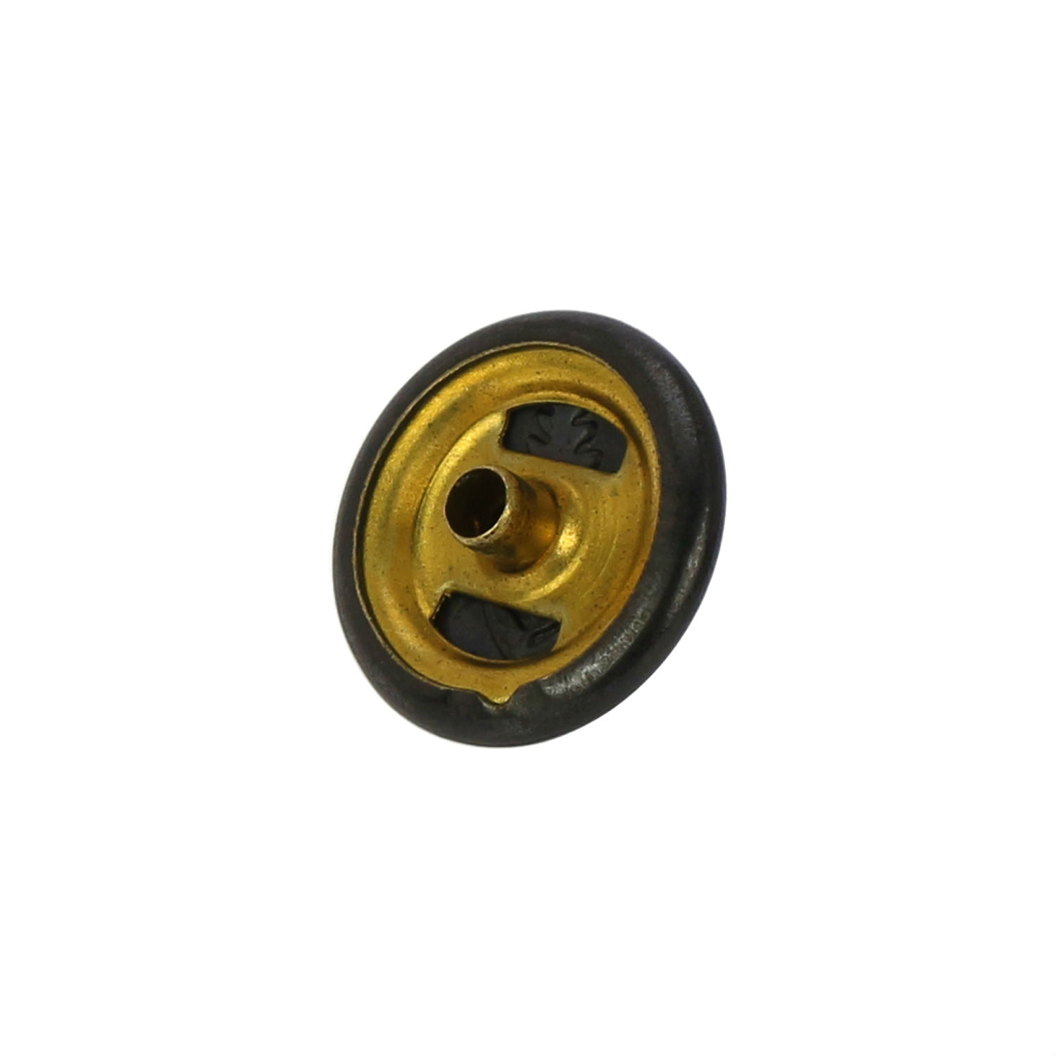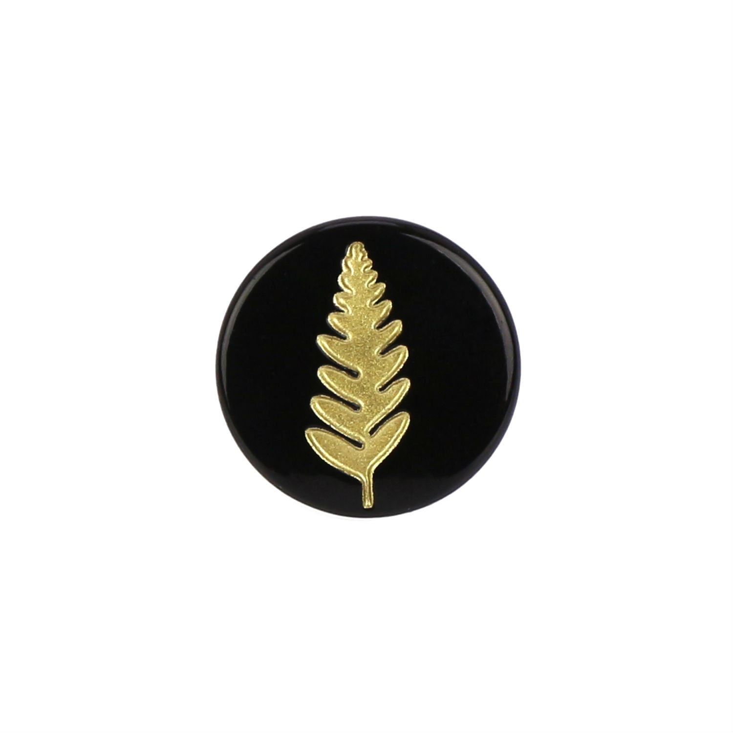The displayed button is made of brass and comes in a round shape. It is adorned with a leaf in gold tone and is excellent for decoration use. This button is an effective fastener and is easy to match with garments and bags.