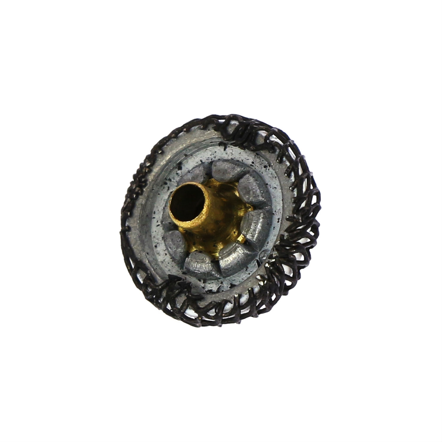 The highlighted snap button is made of alloy and comes in a round shape. It has an enamel finish and is covered with a netted cap. This snap button is easy to install and is excellent for replacing buttons and decorating your crafts.