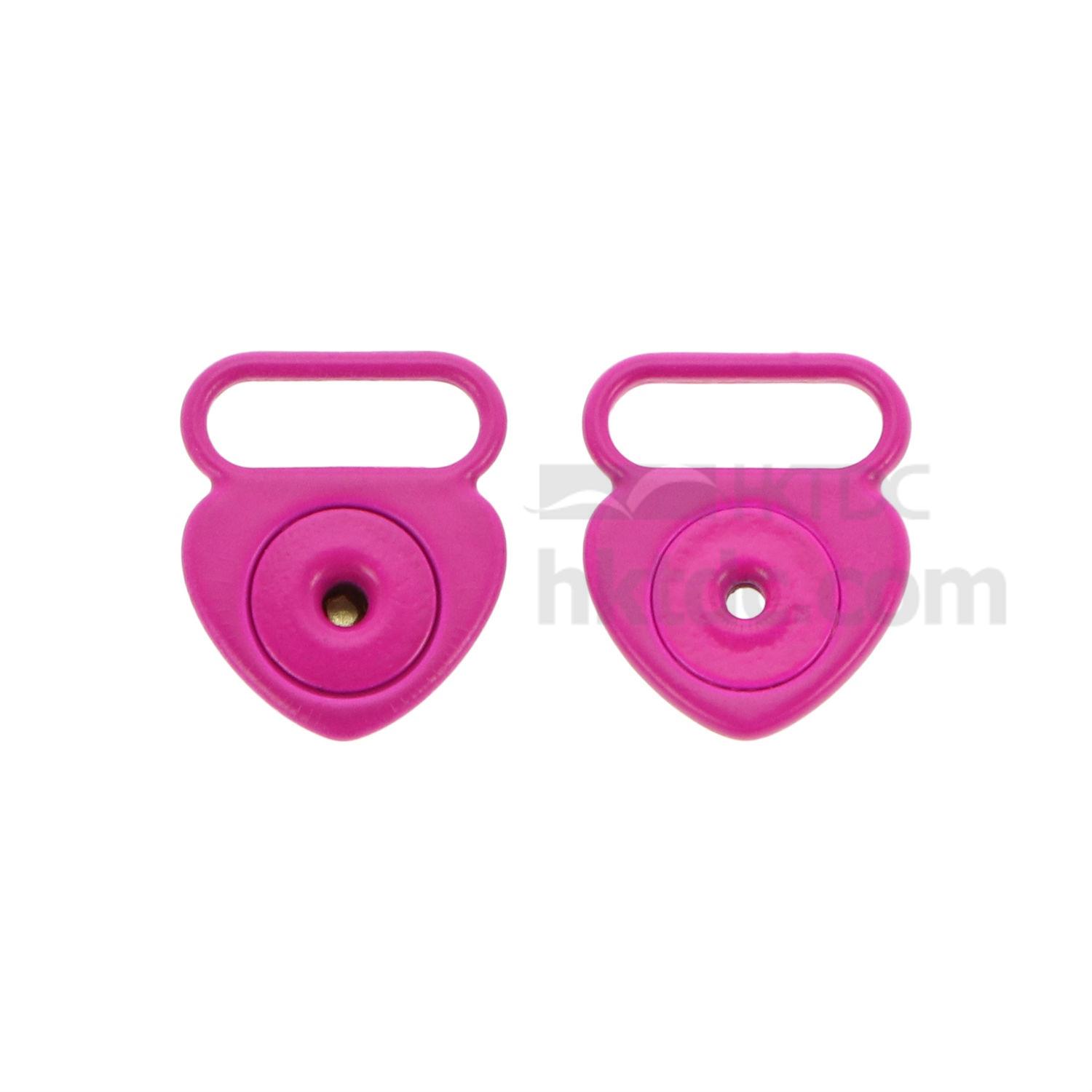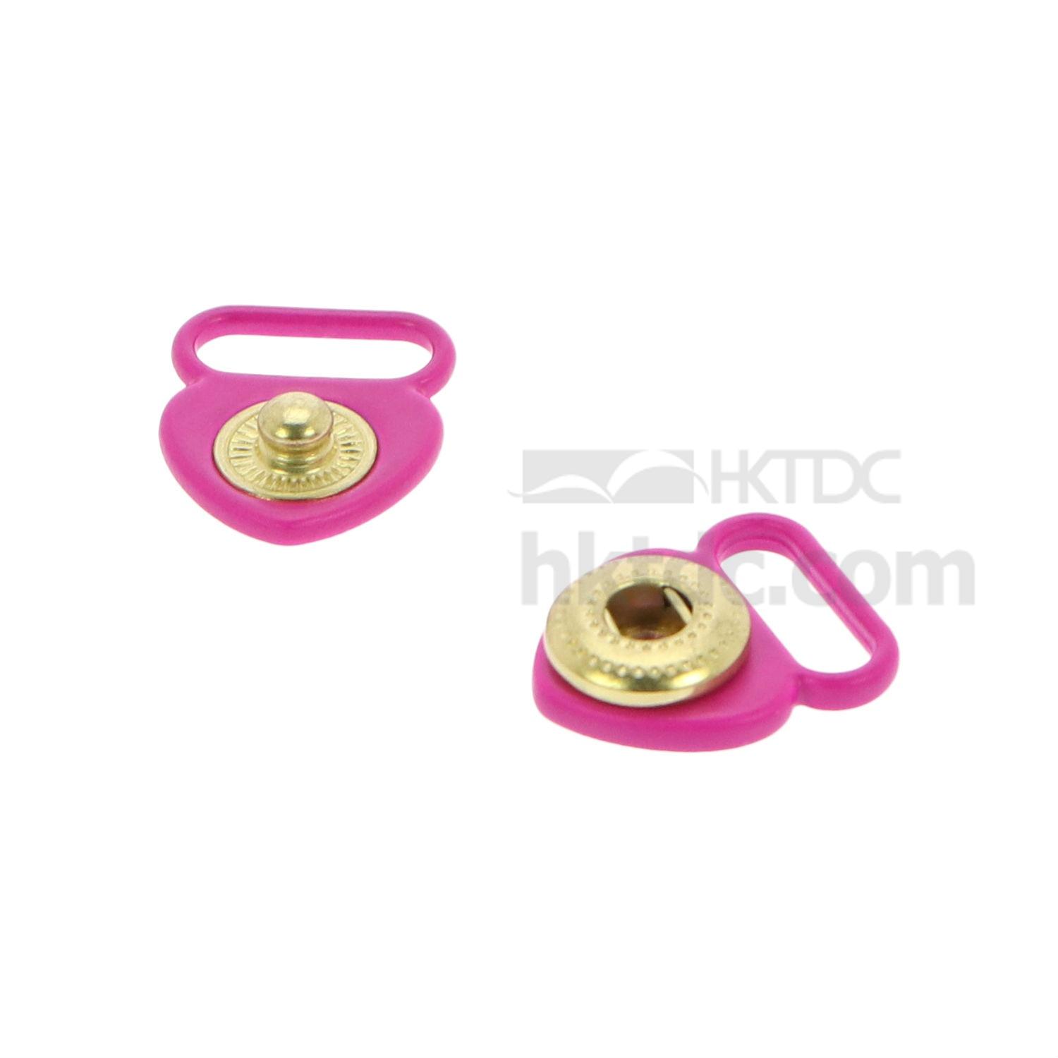 This button comes in a two-part design and has a stud with a socket to provide secure snap on fastening. It flaunts a durable alloy construction has enamel finish to offer a glossy look. The button comes in a triangular shape and has a loop on top for inserting straps.