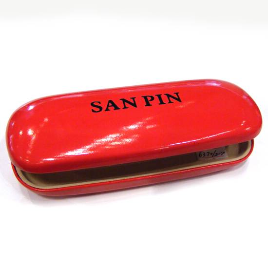 This is a spectacle case which is made of metal, which gives it a rigid shape. There is a slightly furry layer on the inner surface for smooth contact with the spectacle.