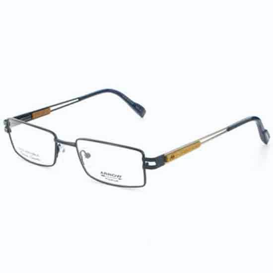 Featured is a spectacle frame in a full-rim design. It boasts a sleek, metal construction for a contemporary look. The lightweight design offers exceptional comfort for wearing. This stylish frame is great for sophisticated glasses.