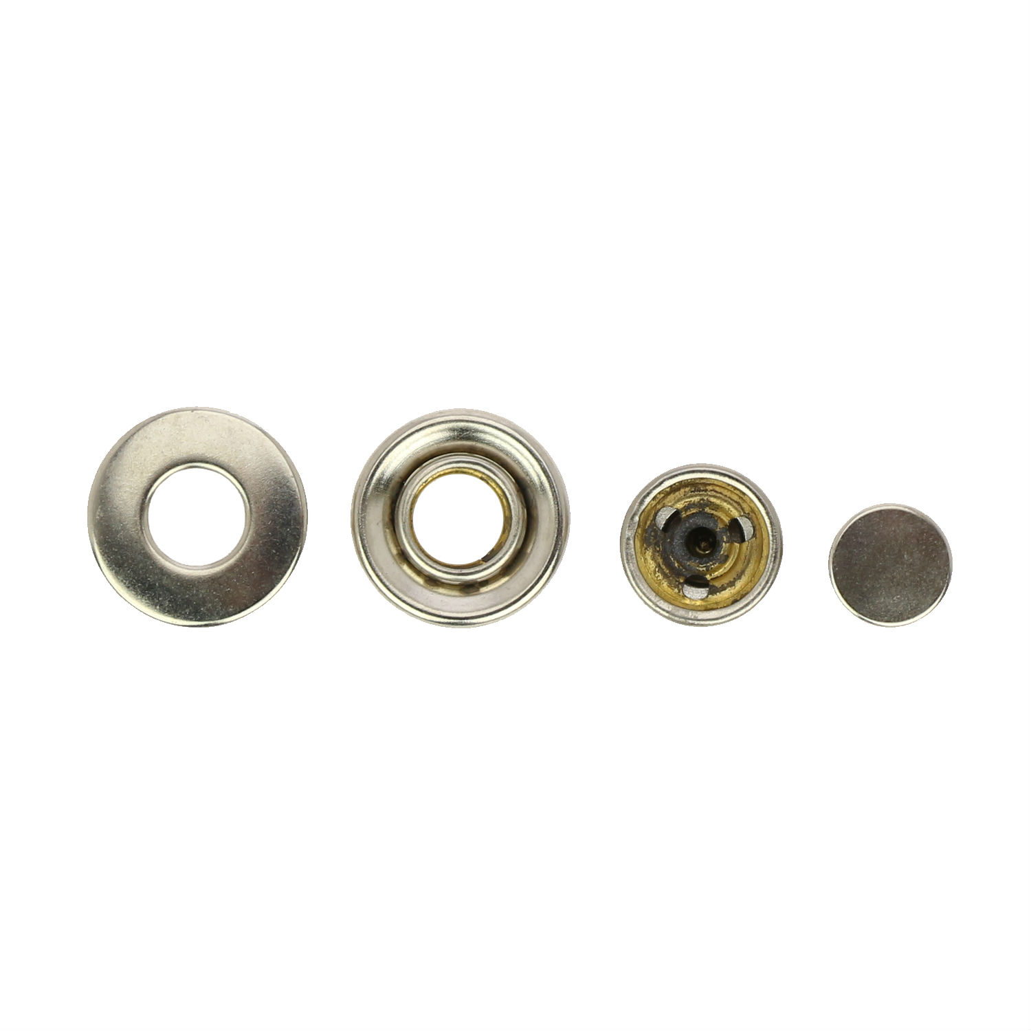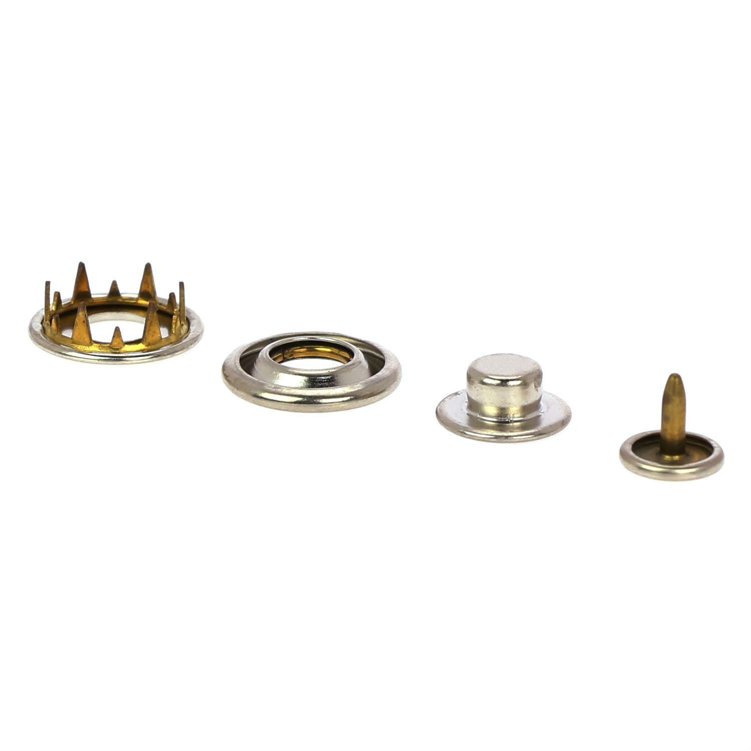 Fasten jeans, jackets, backpacks and more with this classy brass spring snap button. It is round shaped and is finished with plating in a shiny metallic tone. This spring snap button is easy to install and is versatile and convenient to use.