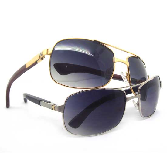 Shown here is a series of metal sunglasses with a retro touch. A special design with wooden temples surprises customers. Wide lenses in black look cool and stylish on any face.