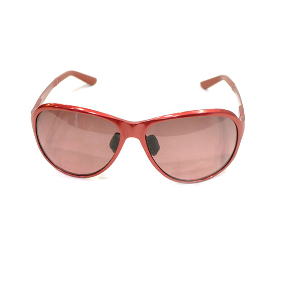 This is a pair of metal sunglasses that comes in a slim style. The lenses are designed in a brick red color, which echoes with the shiny frame. This pair of sunglasses is a fashionable choice for summer.