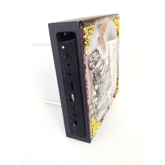 It has various design and sizes available in stock that is able to wall mount or just place it on the table for decoration and playing a music through your smart phone. Also you can stick a meno or your photo by a magnet.