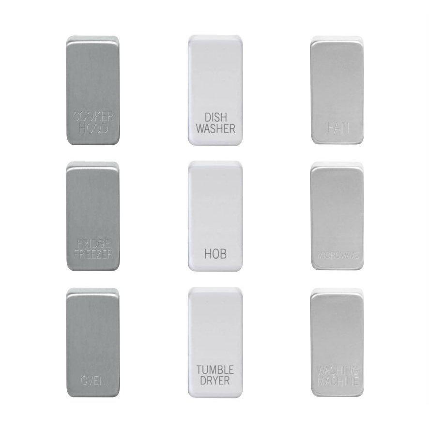 - Available with switch cover printed: cooker hood, dishwasher, fan,fridge/freezer, hob, microwave, oven, tumble dryer & washing machine