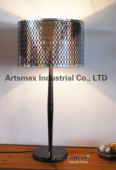 • Metal Table Lamp is made of black chrome metal base and curved metal and fabric lampshade.