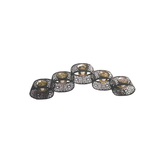This tealight holder is formed by 5 cylindrical holders with delicate hollow details. The tealight holder pairs perfectly with oil burners, plates, vases, photo frames and more. Decorate your countertop, dressing table, end table, bookshelf, etc. with this elegant, beautiful tealight holder.