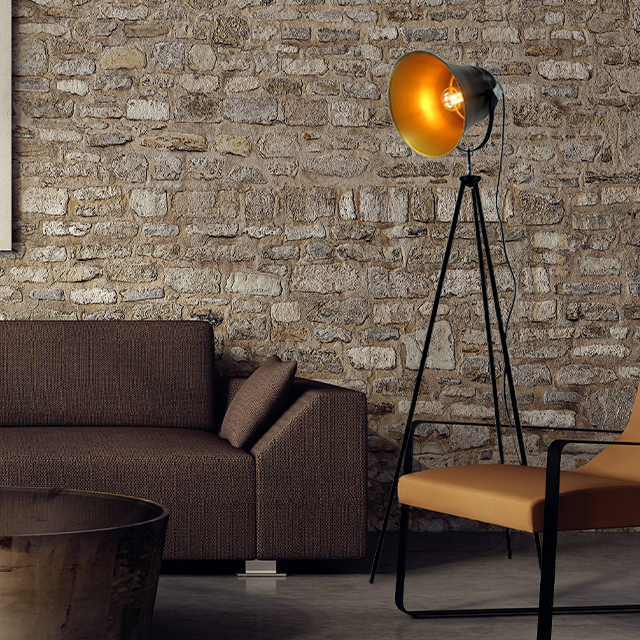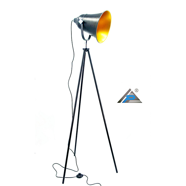 Designed Metal Shade with Classical Black and Gold Color. Metal Tripod Base shows a different stlye of industrial.