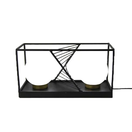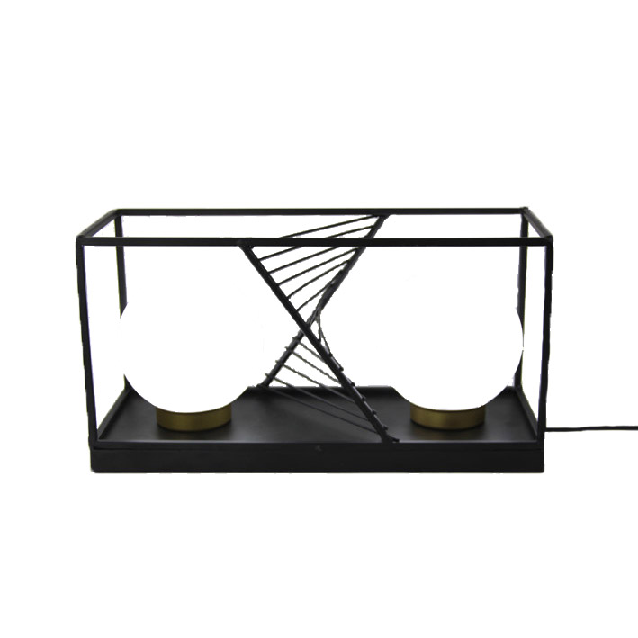 Feature: Metal cage two glass shade table decoration lamp