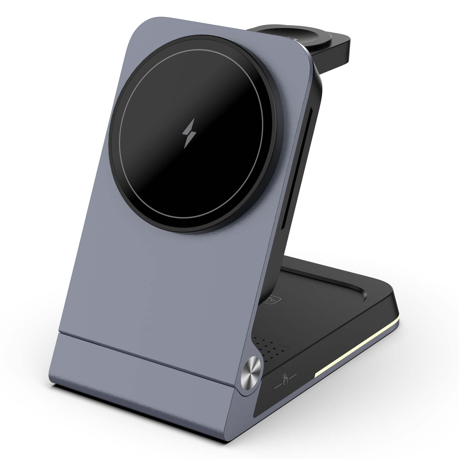 2025 new model metal material to show special and deluxe gifts character. foldable design is portable to carry. 3 in 1 multifunction charging the phones/earbuds/watch simultaneously.