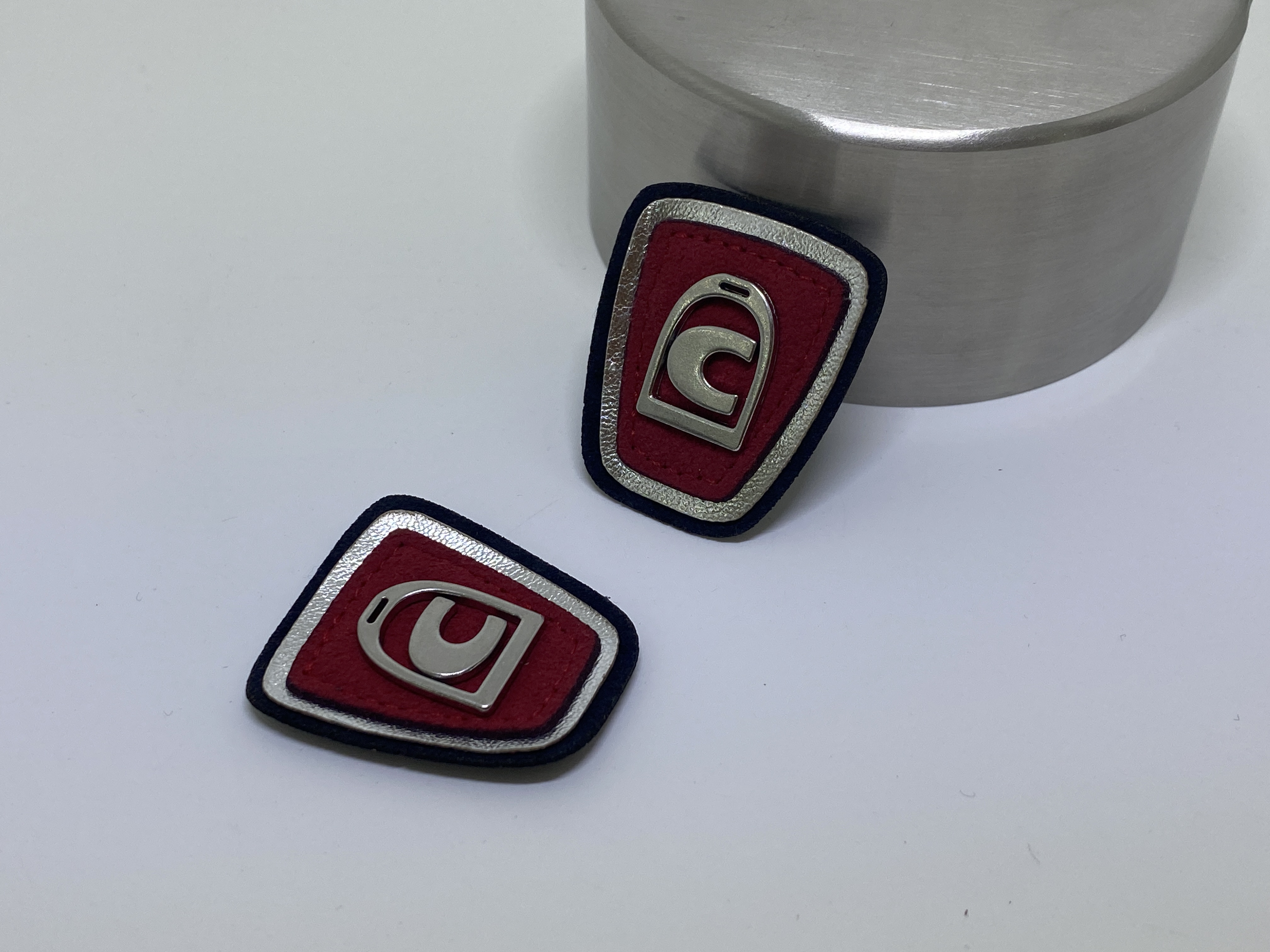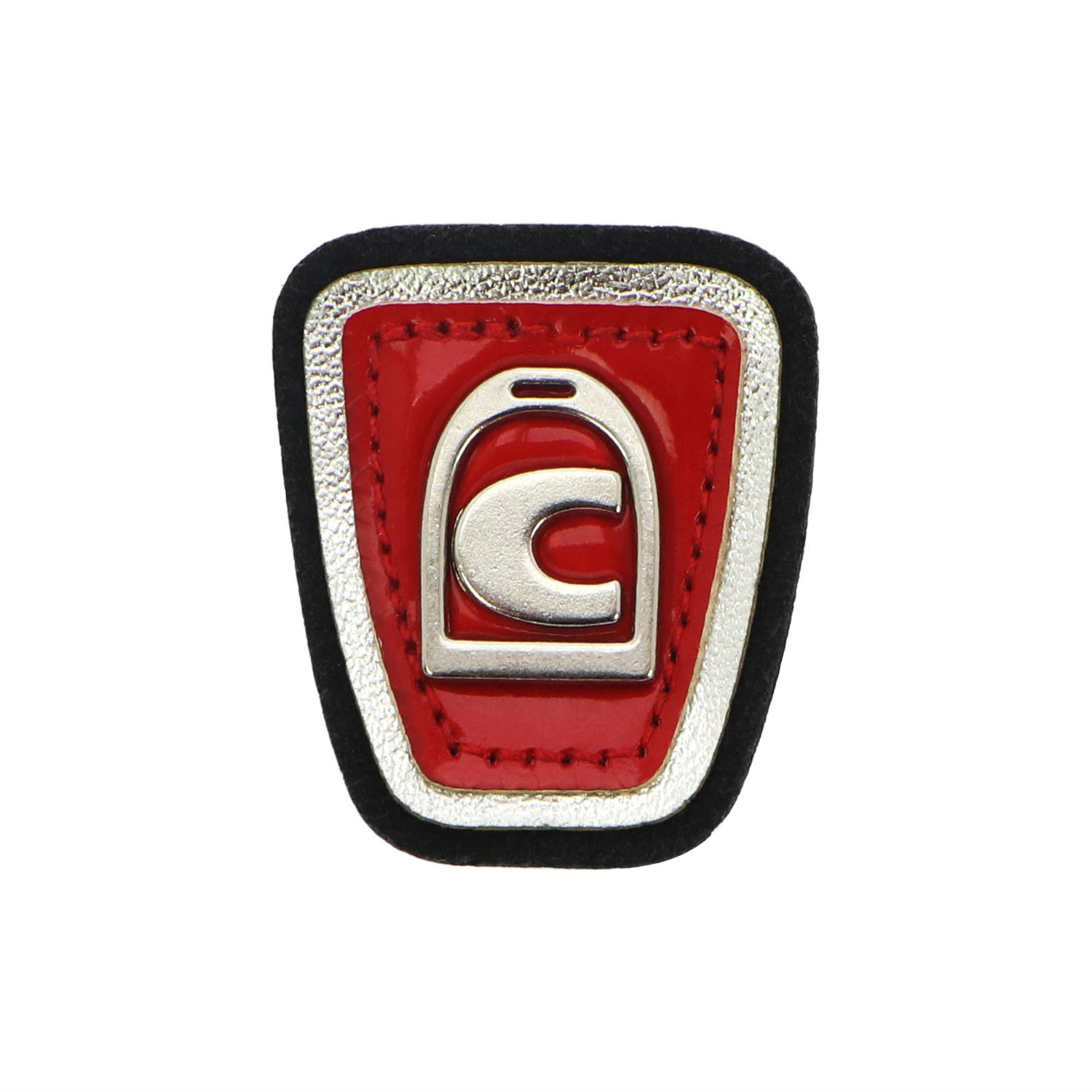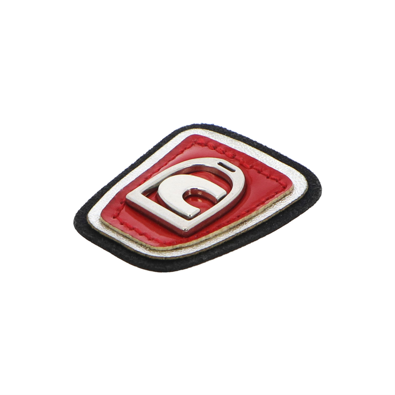 Finish your newly designed jacket by attaching this cool and fashionable patch to its breast pocket. This patch features a brass detail for an edgy look. It is also set on a red piece with matching stitches and wrapped around with a metallic silver fabric that echoes with the shimmering details for a put-together look. To ensure that the patch can blend in seamlessly with a wide range of outerwear, a black outer rim is employed. Spice up your new fall collection by getting this vibrant and stylish patch.