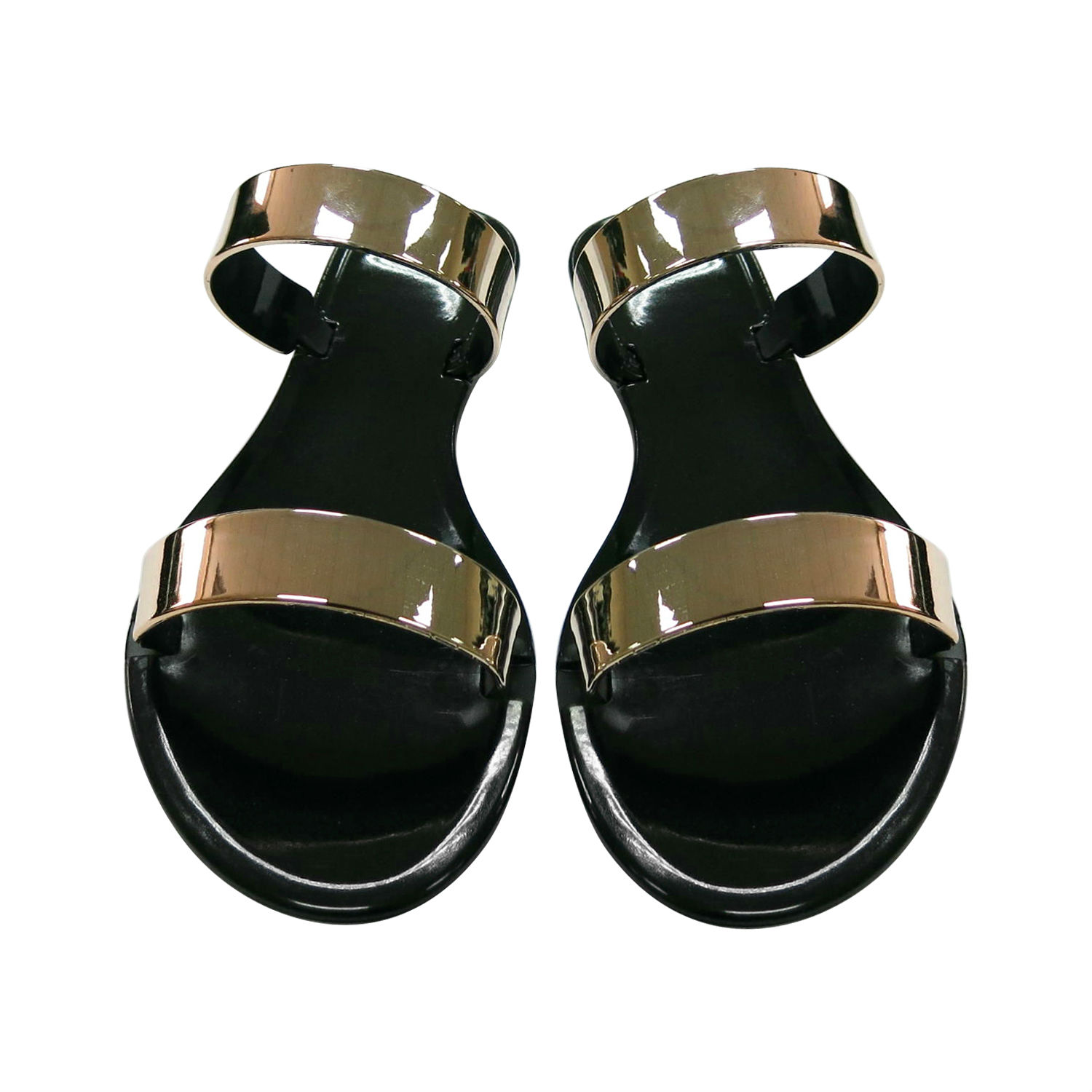 Slip into these on-trend jelly slippers to enjoy the combo of style and comfort. The piece features a double band design with high-shine metallic finish for an extra modern flair, adding some shines to your ensembles to complement your look. The open toe silhouette further guarantees unmatched comfort for immense coziness against scorching summer heat.