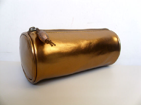 • Bronze barrel zipper puller metallic PU cosmetic bag.