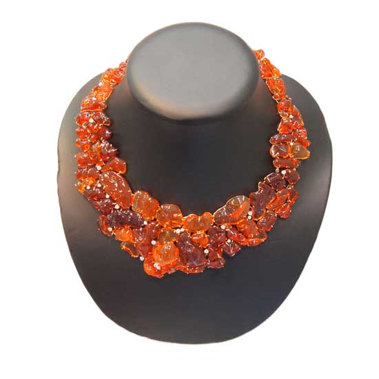 This multi-strand necklace is crafted of orange Mexican opal stones in baroque shapes. The top-quality opal necklace showcases a highly polished finish. Add a lively touch to your ensemble with this eye-catching opal necklace.