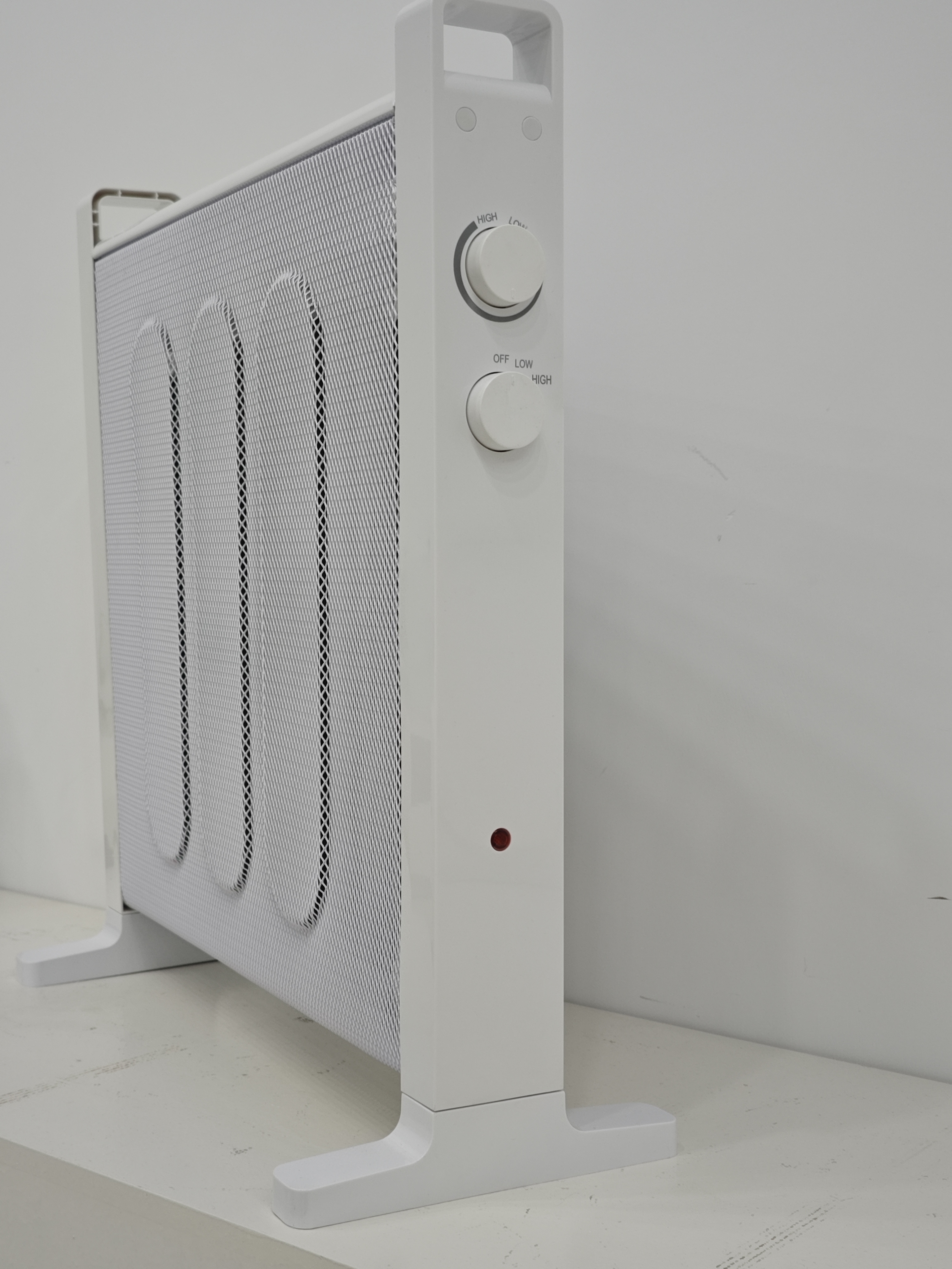 Mica heater Mechnical control Mica heating element (4-5fins) Power:2000W-2200W 2 heat settings Adjustable thermostat Over heating protection Tip-over switch