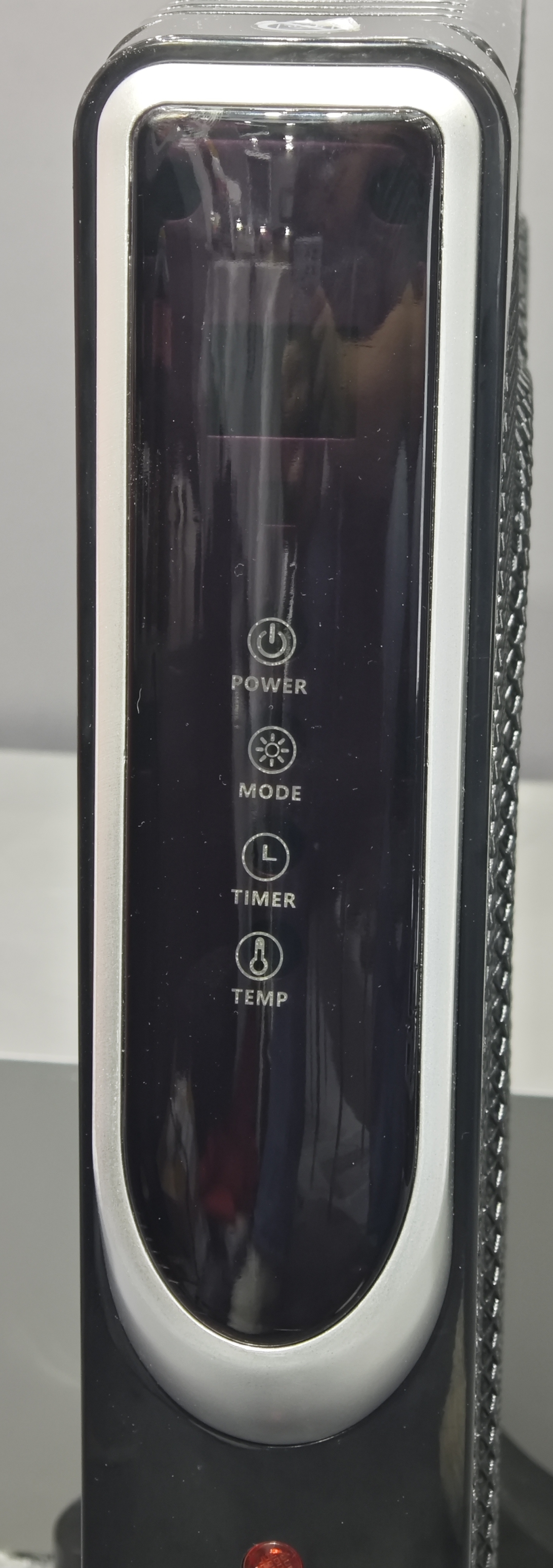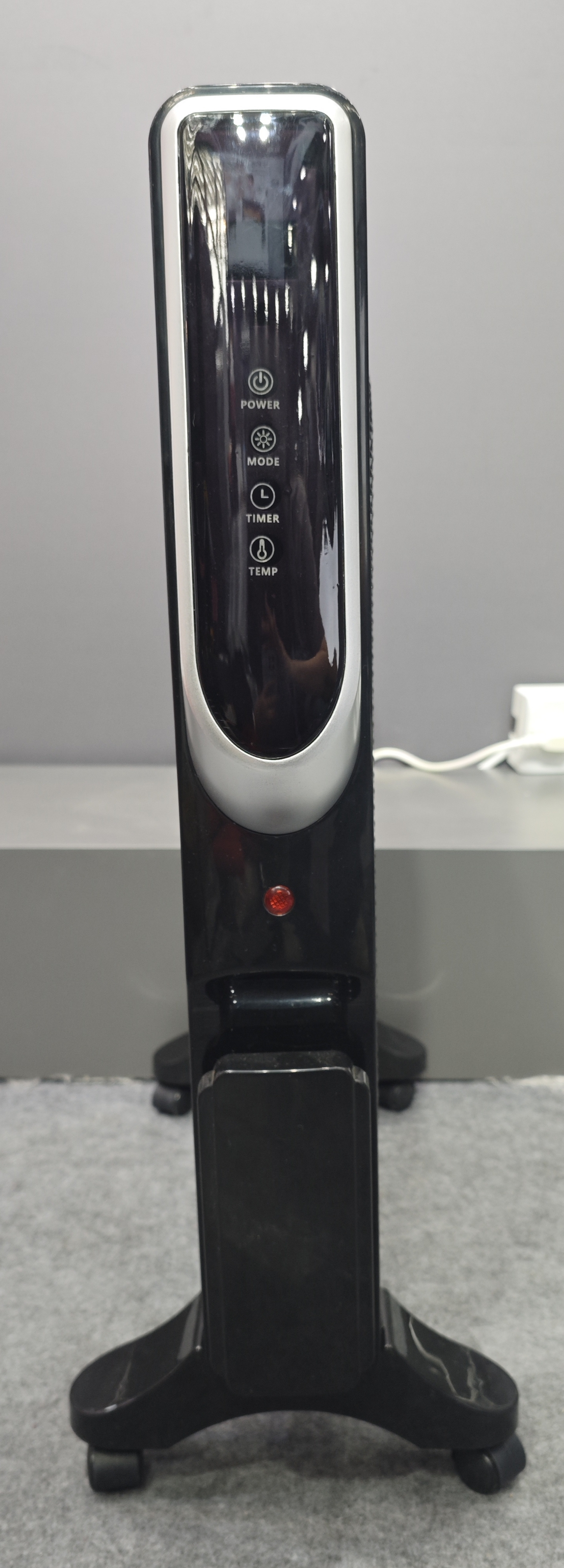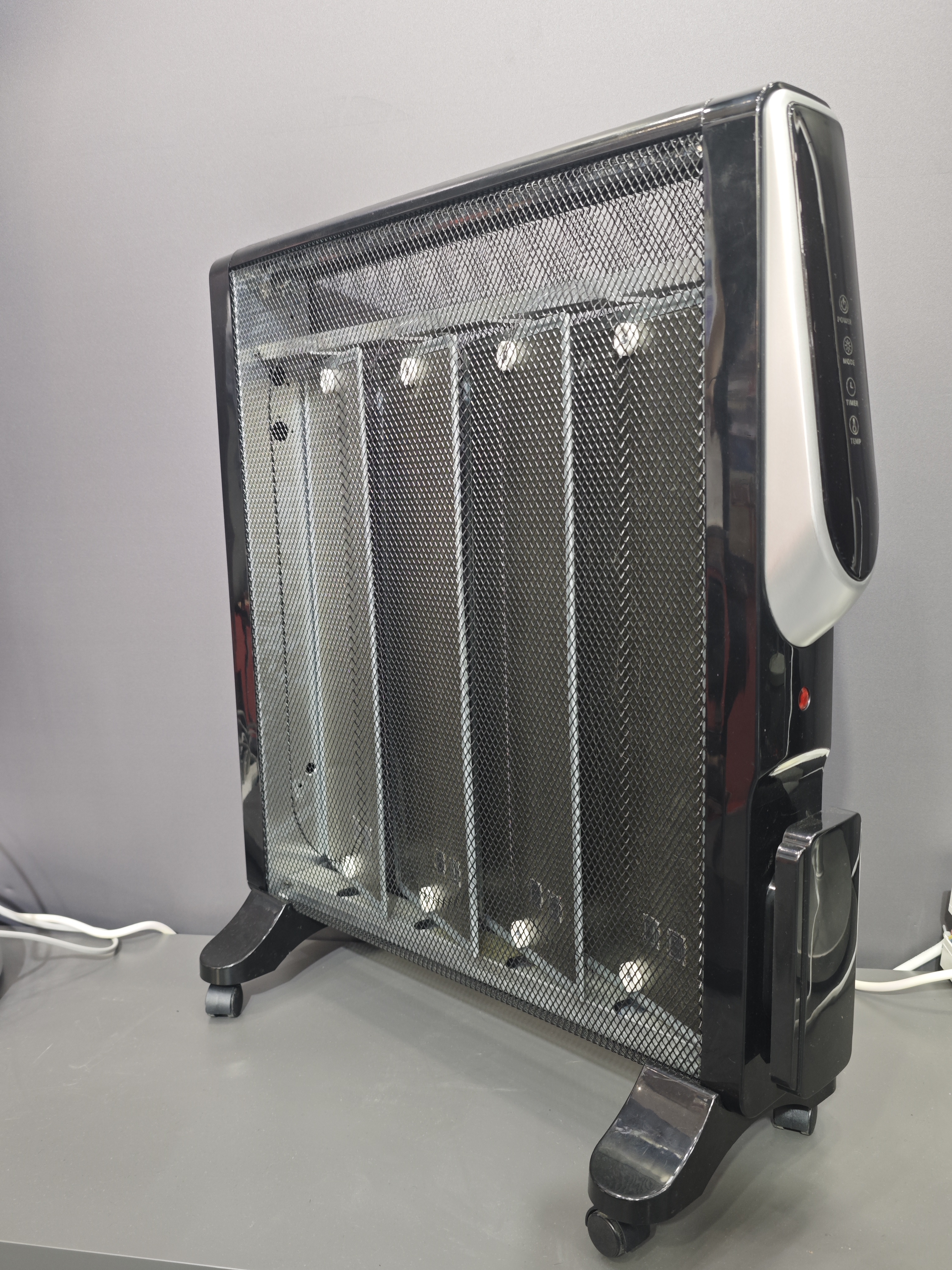 Mica heater Digital control with remote control Mica heating element (4fins) Power:2000W 2 heat settings Adjustable thermostat Over heating protection Tip-over switch