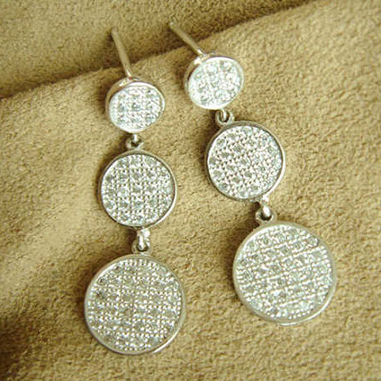 The earrings feature chains of round-shaped embellishments. The latter are highlighted by glittery CZ stones. The earrings will add a dash of elegance and youthfulness to your earlobes.