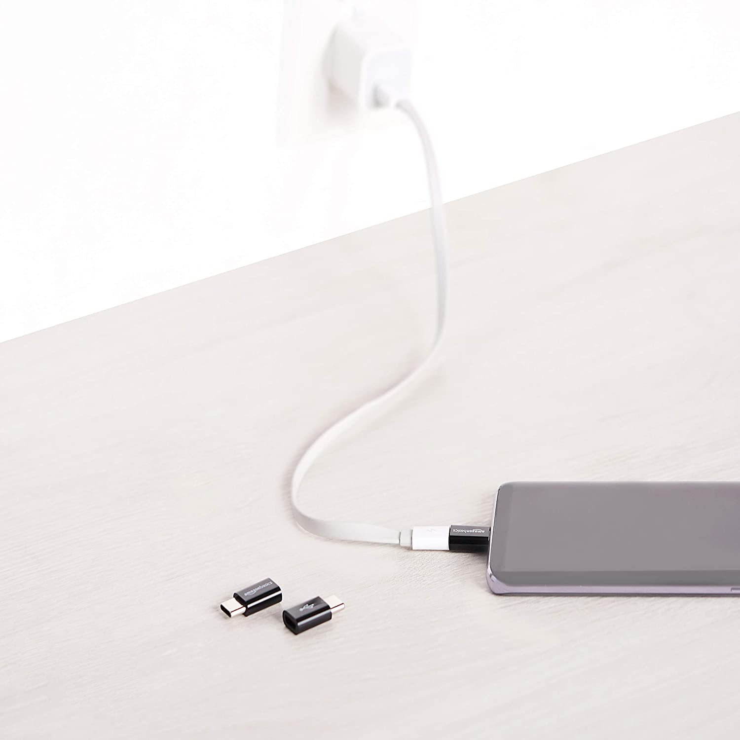 Easily charge and sync your devices with the AmazonBasics Micro USB (Female) to USB-C (Male) Adapter The perfect solution for on-the-go use, this handy keychain adapter allows you connect a USB-C device or plug with a standard Micro USB cable for charging, syncing, music, video, or data transfer. Great to have on-hand as a backup, or simply as an alternative to buying an entirely new cable, the adapter is both compact and easy to use.