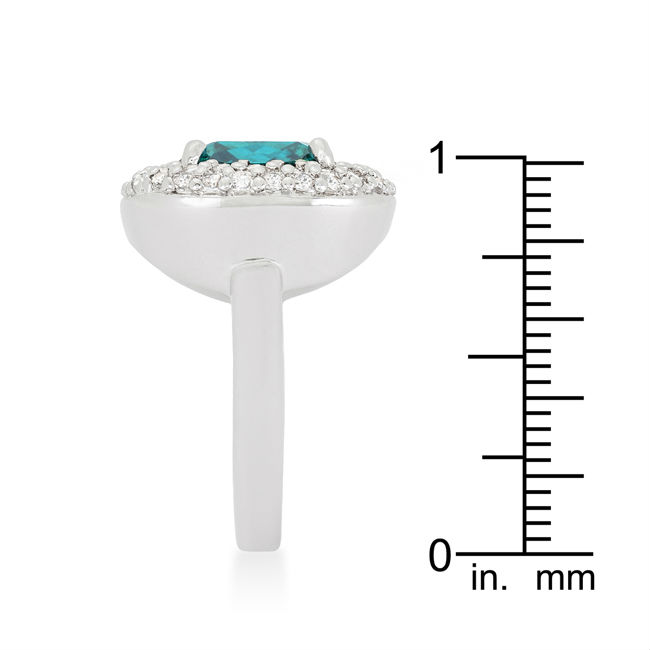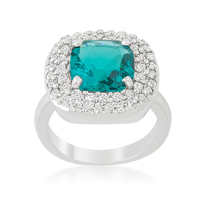 Genuine Rhodium Plated Bridal Cocktail Ring with Cushion Cut Aqua Blue Cubic Zirconia and Micropave Set Round Cut Clear Cubic Zirconia Accents Polished into a Lustrous Silvertone Finish