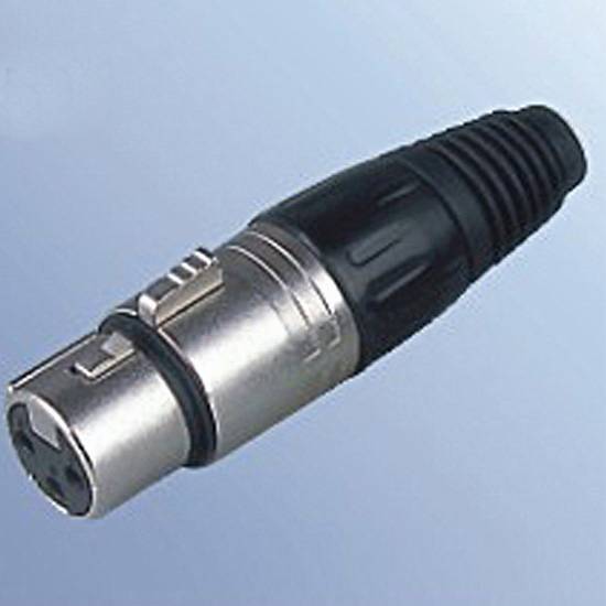 This connector features a solid black and silvery construction. It is a connector for adapting microphones to compatible belt-pack transmitters. Keep this audio connector handy for custom audio hookups.