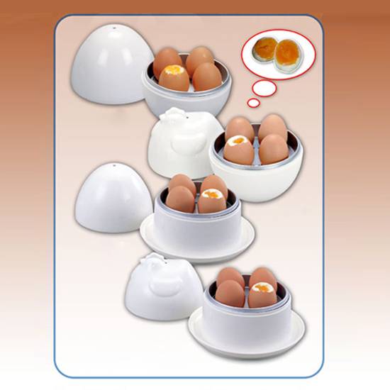 This microwave egg boiler is made of food safe material with high durability. The cooker is designed as a chicken shape in white colour. It can contain 4 eggs at the same time for boiling.
