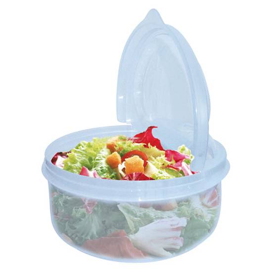 The round shape plastic container is suitable for microwave use and also storage in fridge. The clear plastic allows user to distinguish the food stored inside without opening every container. Plastic material is hygienic and easy to clean. Its big size is good for storing salad mixing and vegetables.