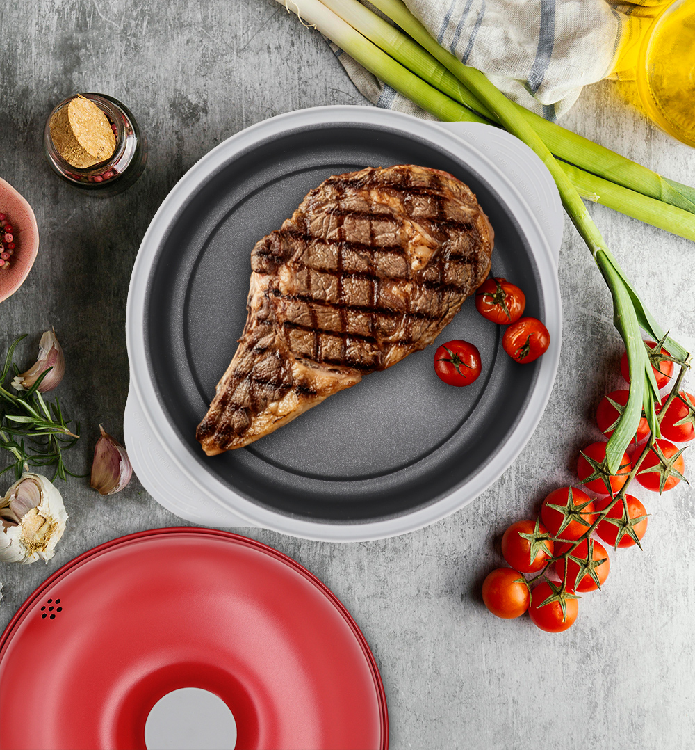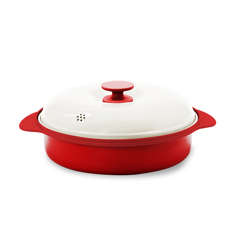 Instead of traditional microwave cookware which is made of plastic, ceramic or glass, Help-U Microwave Cooker is