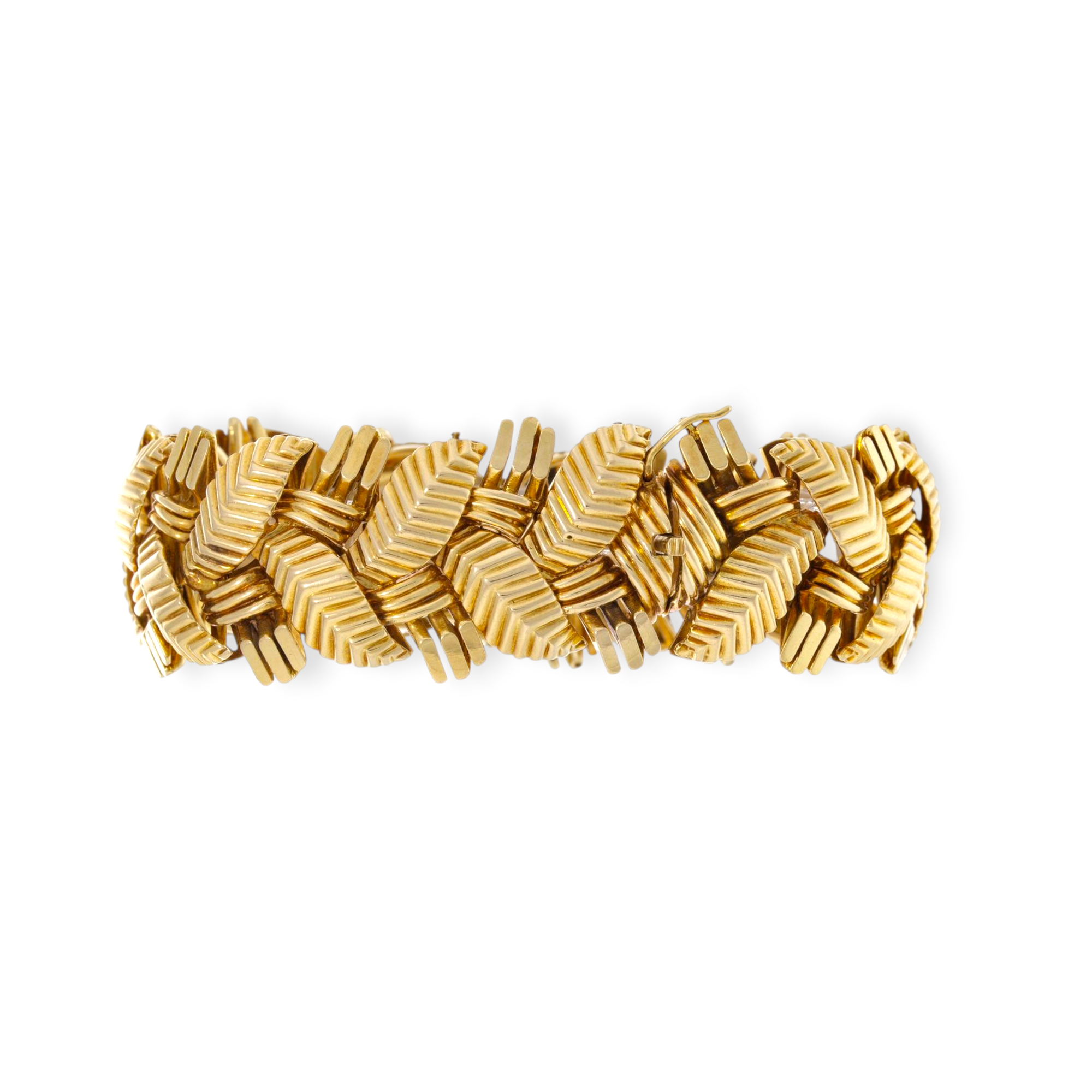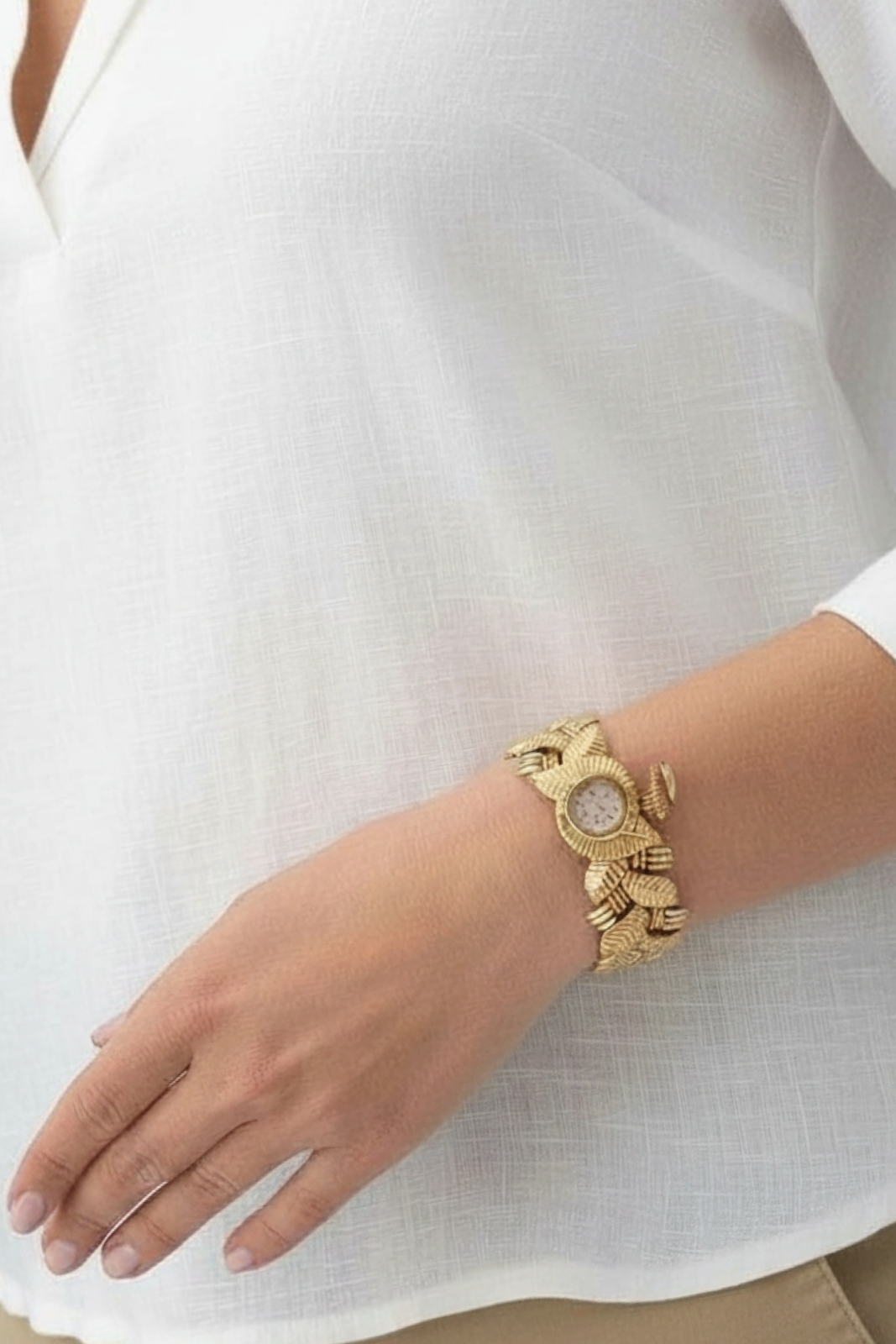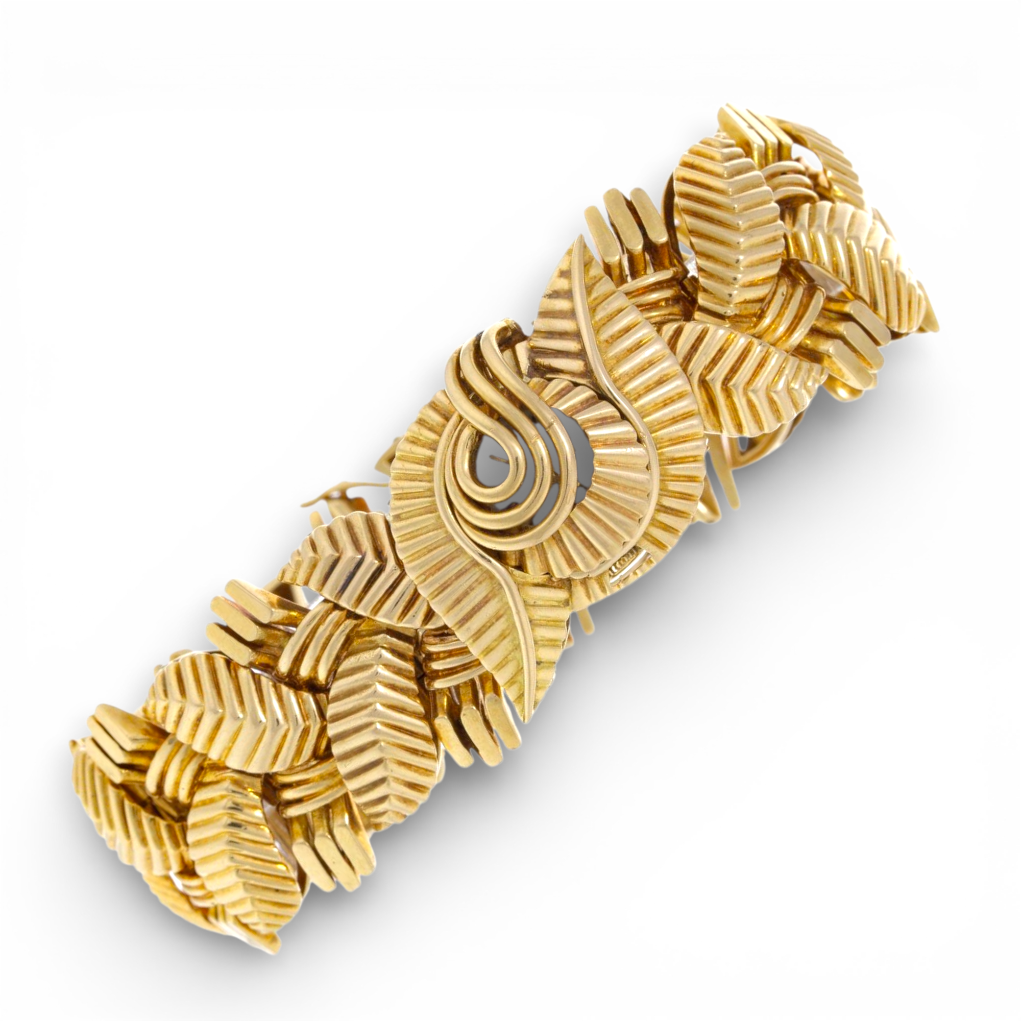 18k gold cover watch bracelet with foliate motif, circa 1964
