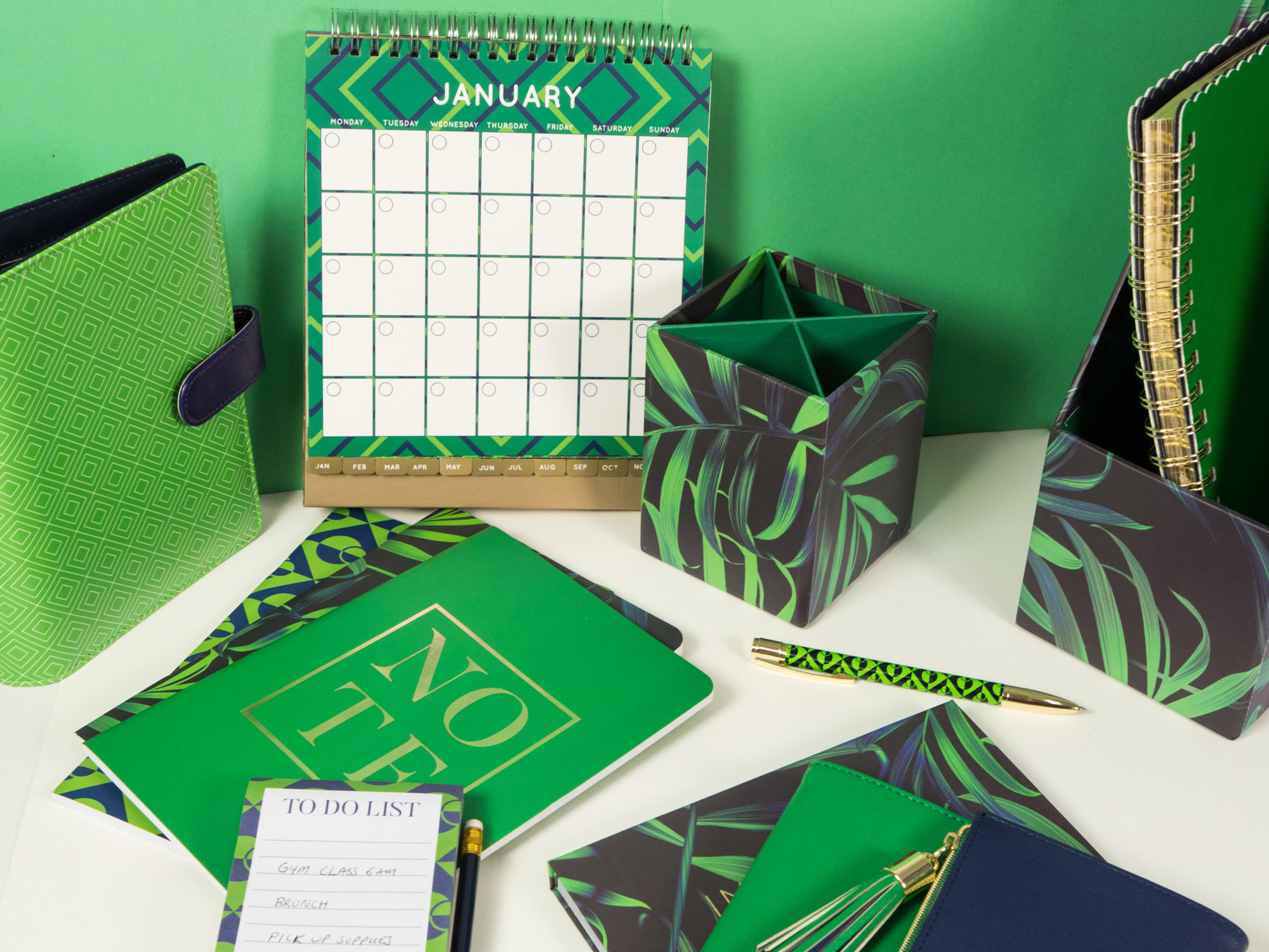 THE MIDNIGHT PALM FASHION STATIONERY AND DESK ACCESSORY RANGE is a moody co-ordinate collection, rich with texture for customers with contemporary tastes.