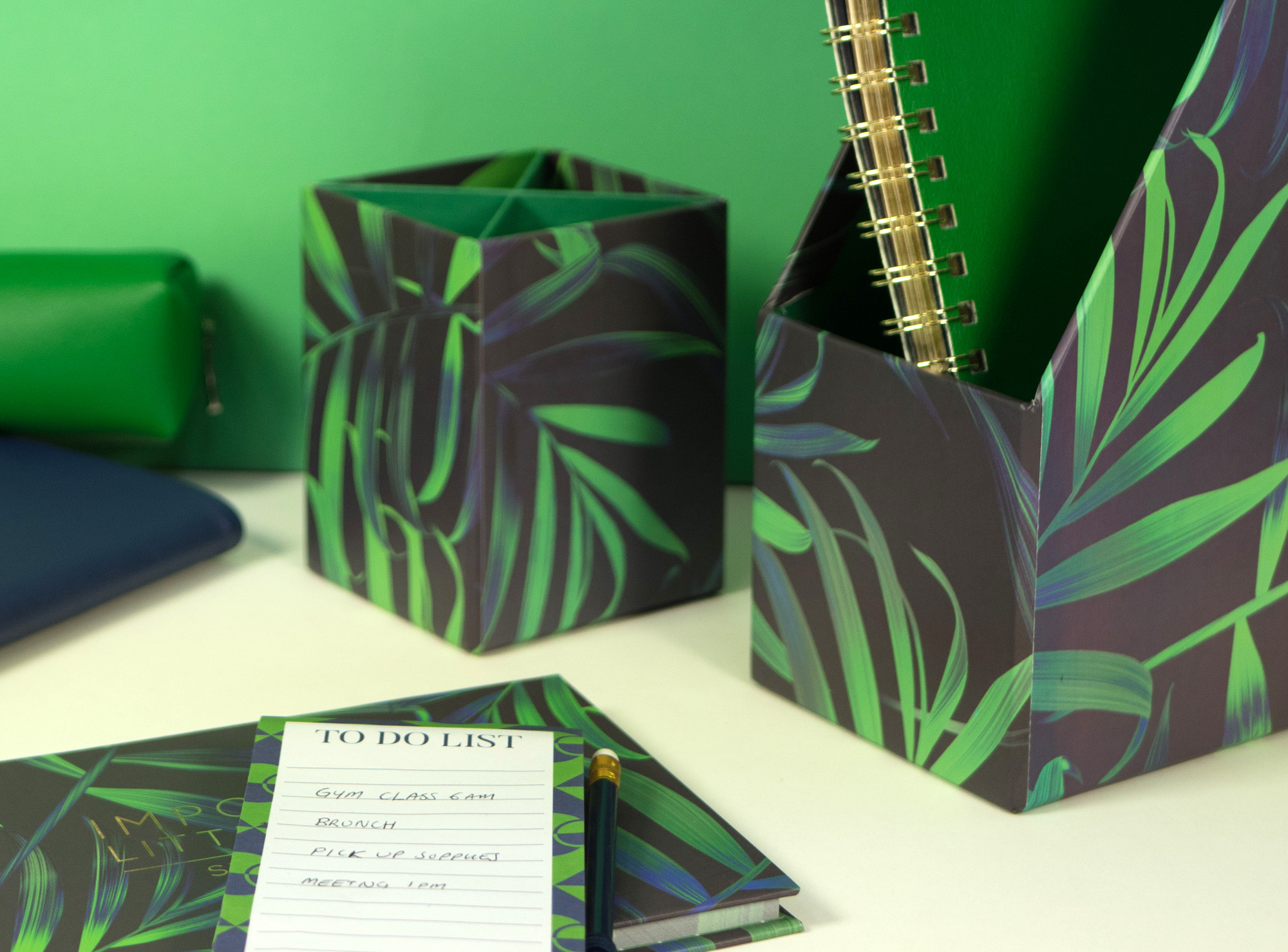 Midnight Palm Fashion Collection Premium Stationery and Desk Accessories Range - Includes Magazine File, Document Tray, Pen Cup, Pencil Case