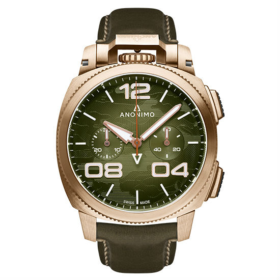 Catching turn heads with the key elements of large bronze cushion case, green leather strap, and beautifully textured camouflage dial, this military watch sports a modern design to keep your athleisure look stylish. The Sellita SW 300 self-winding movement is known for its superb reliability and accuracy. Limited to 97 pieces, this is a true investment piece for all enthusiasts.