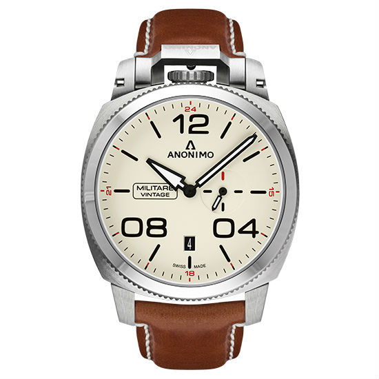 As how it is named, this automatic watch from Anonimo seamlessly blends the military and vintage style with the sleek cushion case set between the padded brown leather straps. Fitted with the professional Swiss-made automatic movement, this time piece boasts legible time display with bold details set on the clean cream-hued dial.