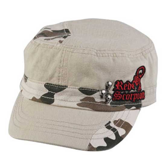 The military-style hat is embellished with skull studs and an embroidered badge for added style. It fits your head with excellent comfort. Give a military edge to your look with this camouflage textile hat.