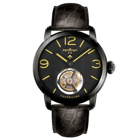This watch introduces a stylish military design and is constructed of 181 pieces of sub-assembly modules and 19 jewels to show exceptional class. It has a round black dial with 2 hands and is equipped with a tourbillon located at 6H position. The watch offers 40 hours power reserve and is excellent for everyday wearing.