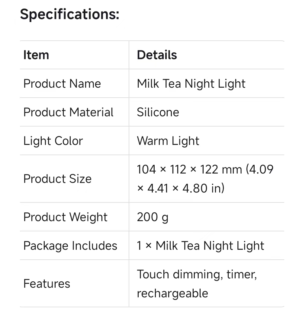 The Milk Tea Silicone Night Light is more than just a lamp – it's a conversation starter. With its adorable bubble tea design, soft warm glow, and user-friendly features like touch control and timer, it brings both function and fun to any space. Whether for yourself or as a gift, it's sure to bring a smile.