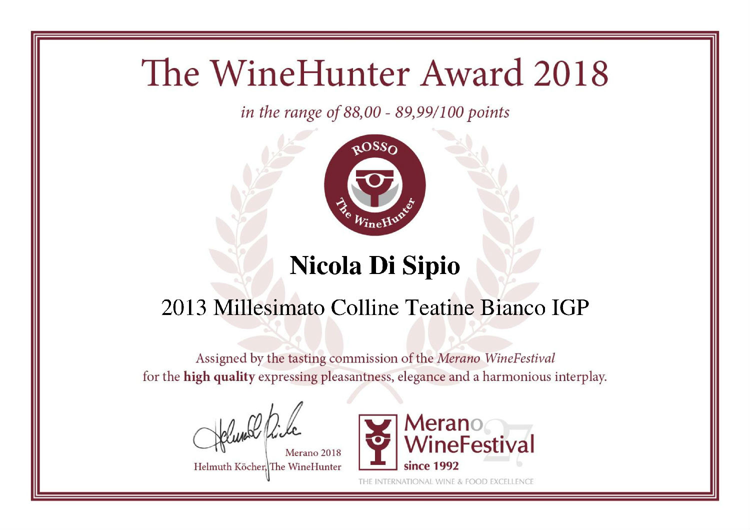 A trio of white grapes - pecorino, falanghina and trebbiano – are the protagonists of this wine, golden yellow in color. Complex aromas, accompanied by a perfectly balanced alcoholic structure and power, evoke exotic fruit, bergamot, candied orange and yellow peach, broom and acacia.