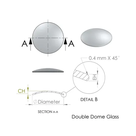- Mineral glass with flat round, double dome, single dome and TV shape
