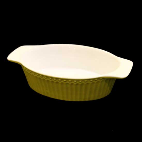 This mini-sized baker bowl is perfect for making baked pasta and rice dishes. Crafted of stone, the heat-resistant baker bowl is microwave and oven safe. It is designed with two side handles for ease of use.